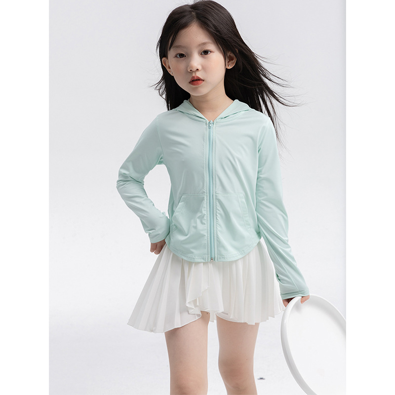 여자 슬림 태양 보호 의류 2025 여름 새로운 어린이 얇은 후드 태양 보호 의류 재킷 아기 시원한 피부 의류