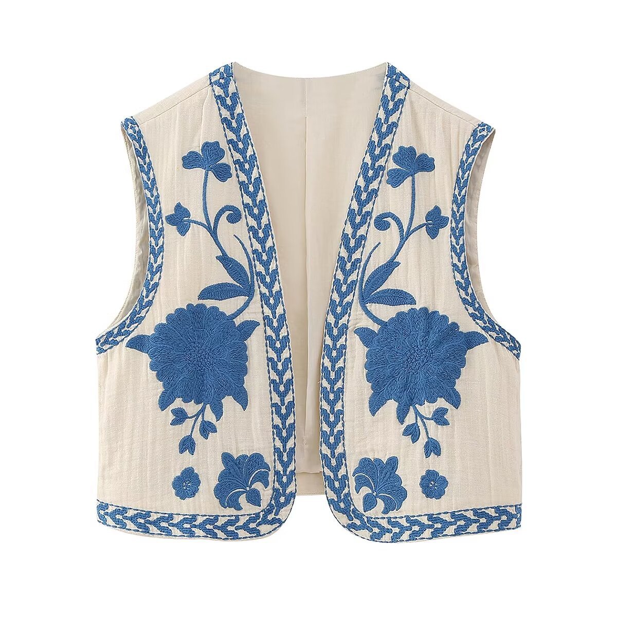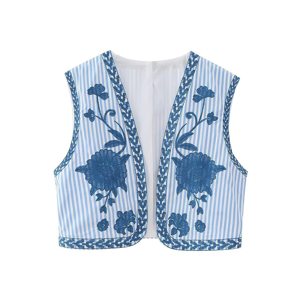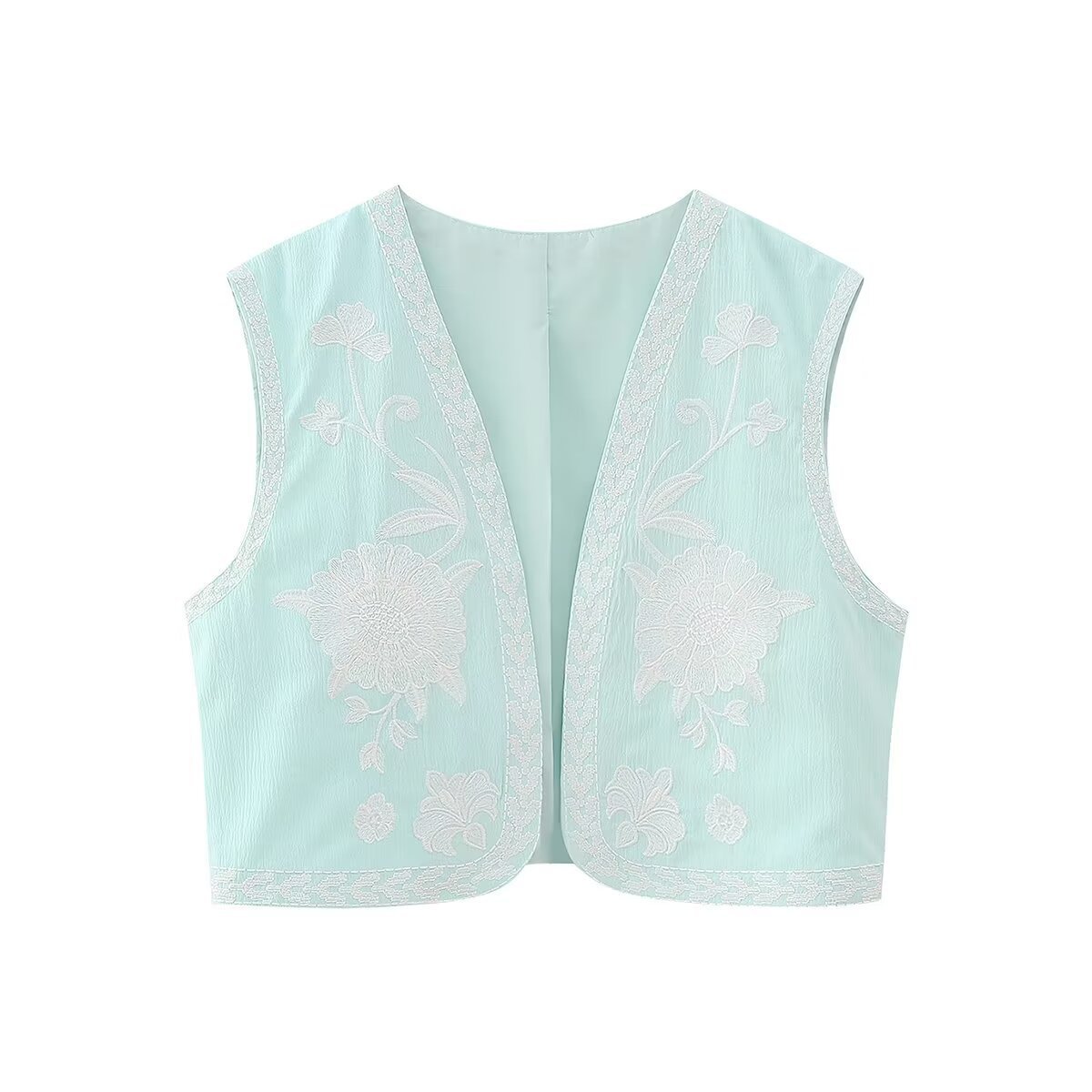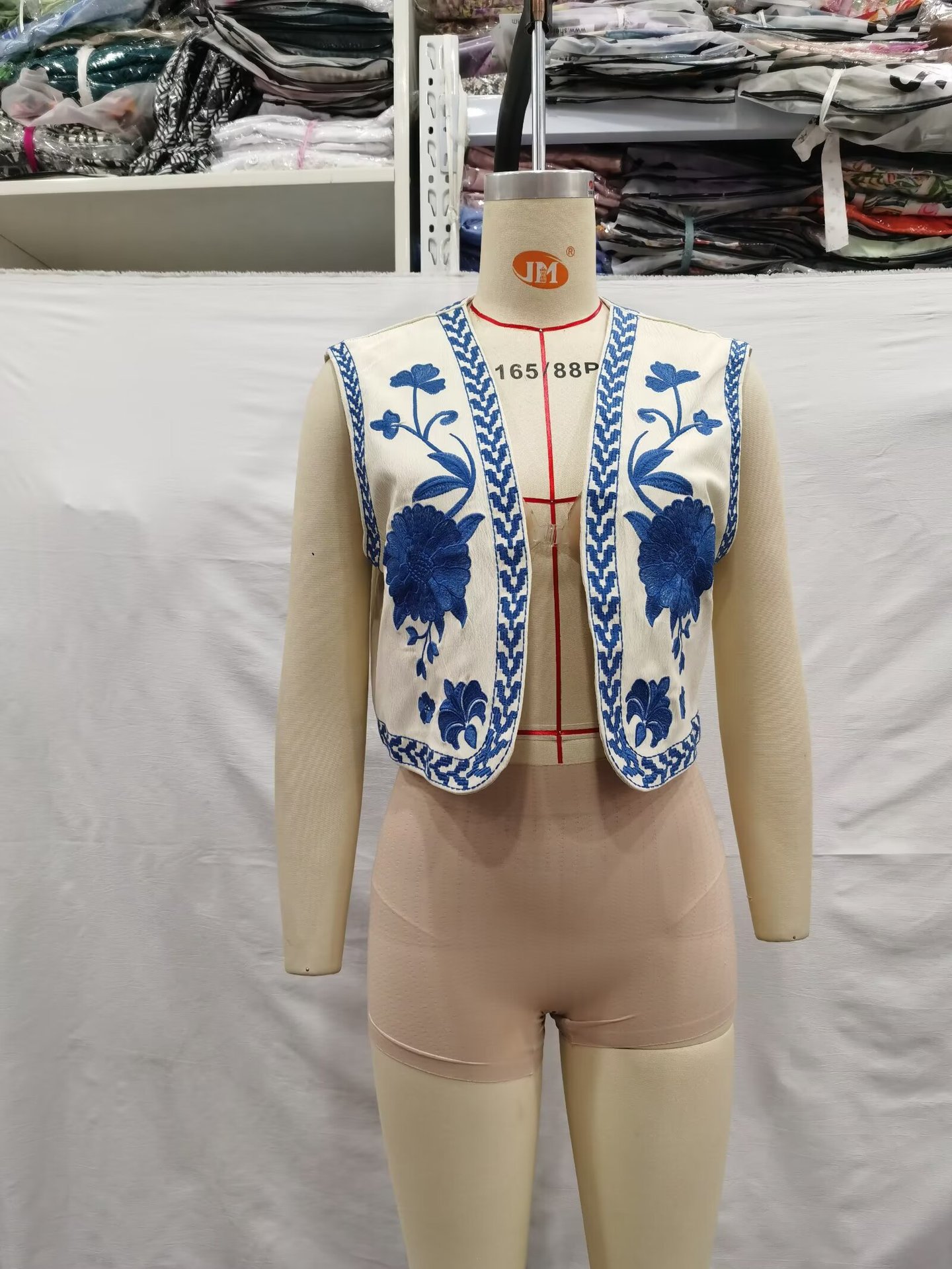 24 CC 아마존 국경 대외 무역 유럽과 미국 여성의 여름 새로운 패션 복고풍 자수 조끼스토어 가기