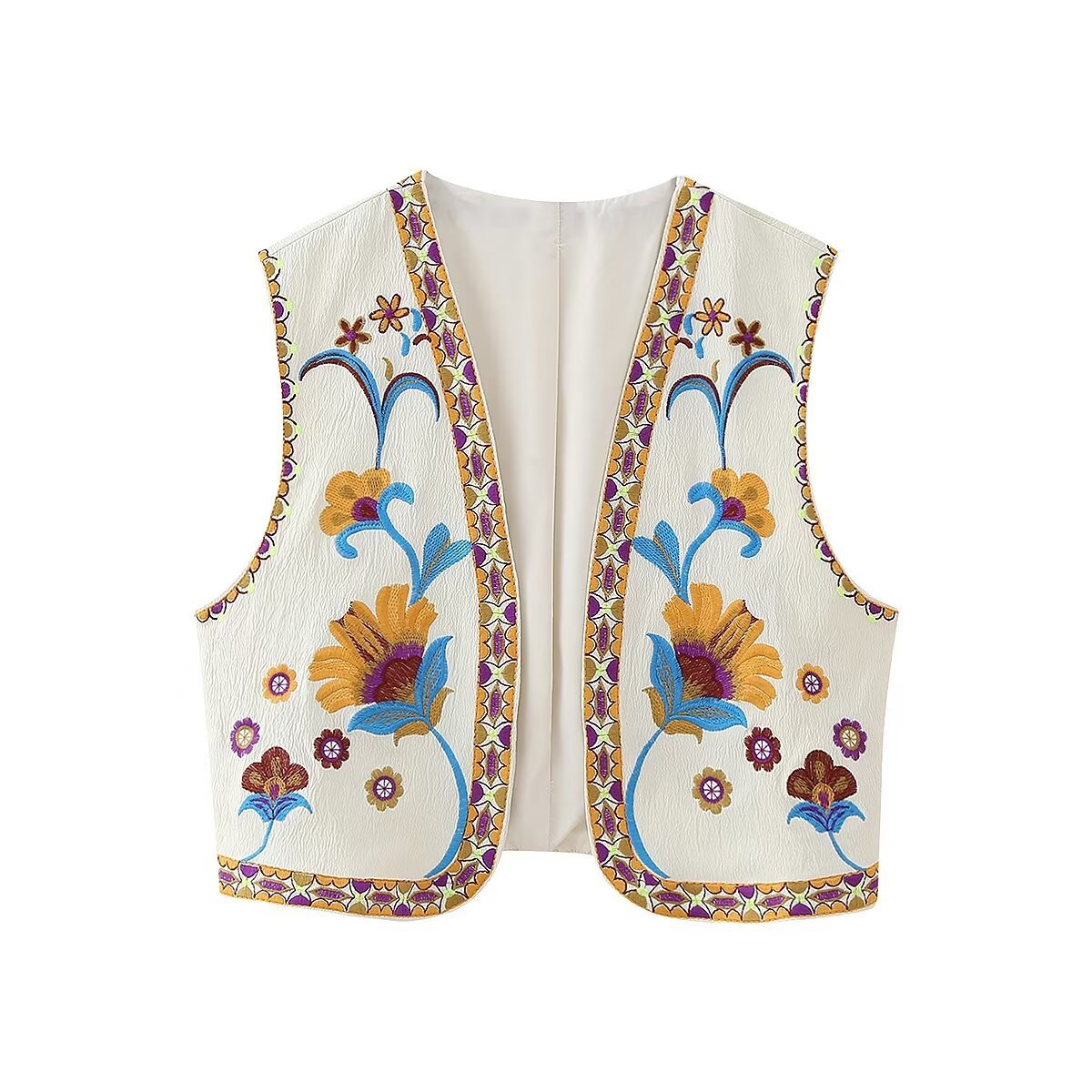 24 CC 아마존 국경 대외 무역 유럽과 미국 여성의 여름 새로운 패션 복고풍 자수 조끼