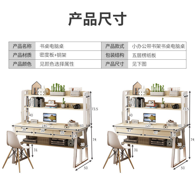 컴퓨터 데스크톱 테이블 간단한 홈 학생 책상 책장 조합 학습 책상 임대 방 침실 간단한 테이블스토어 가기