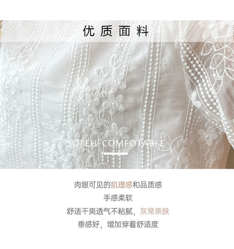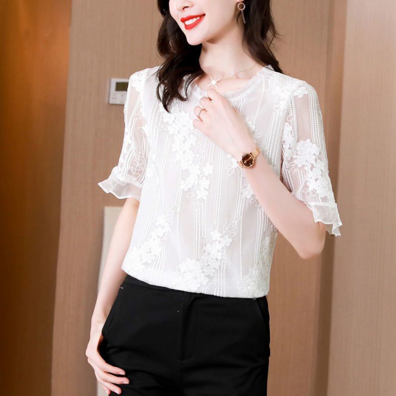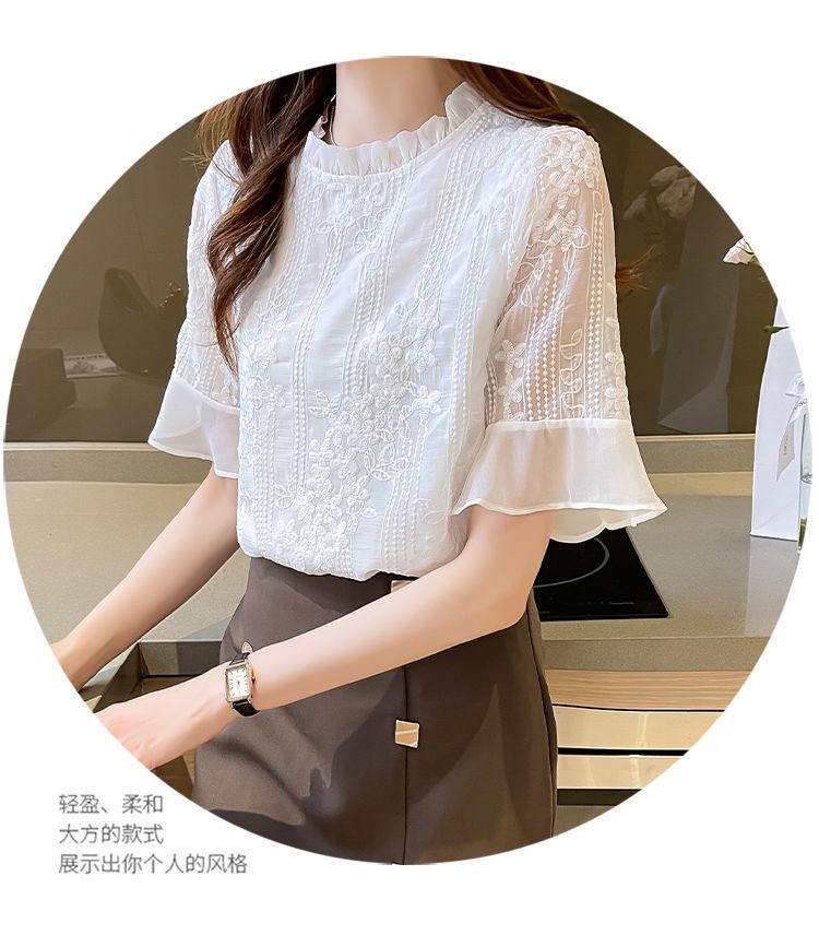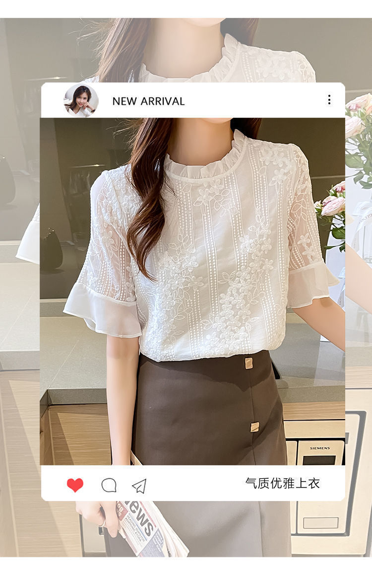쉬폰 셔츠 화이트 하프 슬리브 티셔츠 여성용 2024 년 새 여름 짧은 소매 귀 칼라 셔츠 안티 실크 탑 작은 셔츠스토어 가기