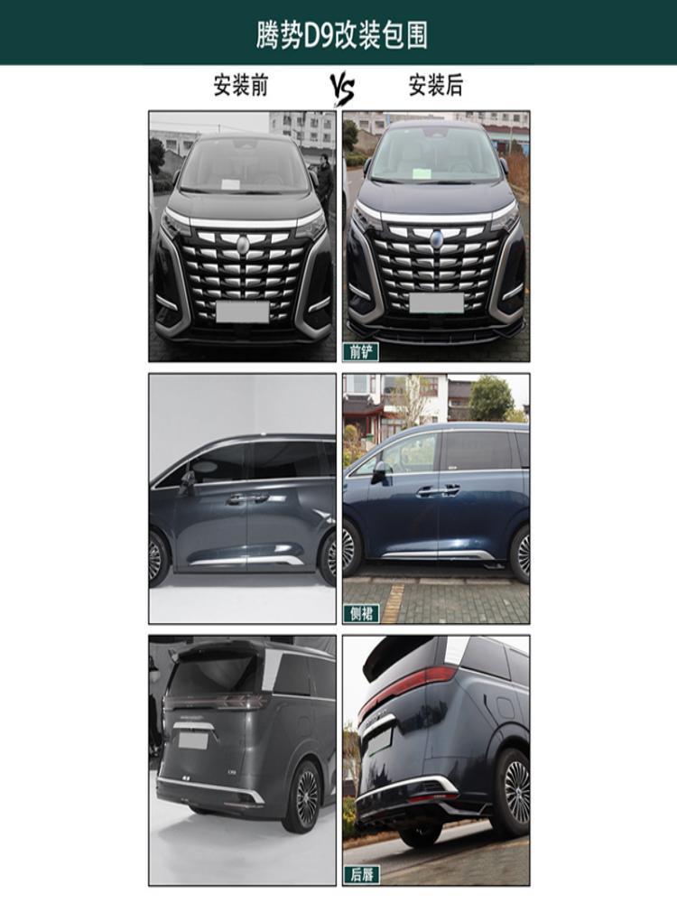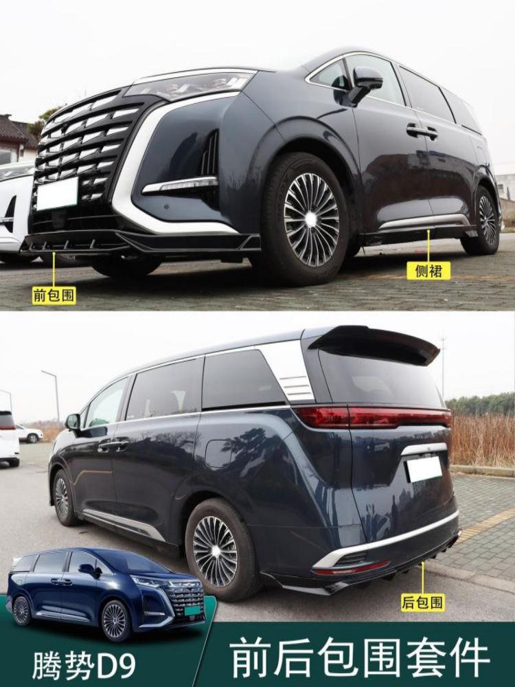 Tengshi D9 외부 전체 주변 스포츠 키트 전면 립 립 립 립 사이드 스커트 범퍼 블랙 사무라이 수정 액세서리에 적합스토어 가기