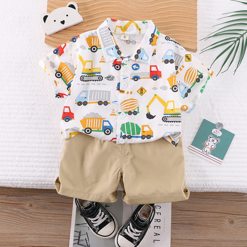 어린이 의류 소년 여름 세트 2024 새로운 소년 반팔 옷 유행 아기 캐주얼 투피스 세트