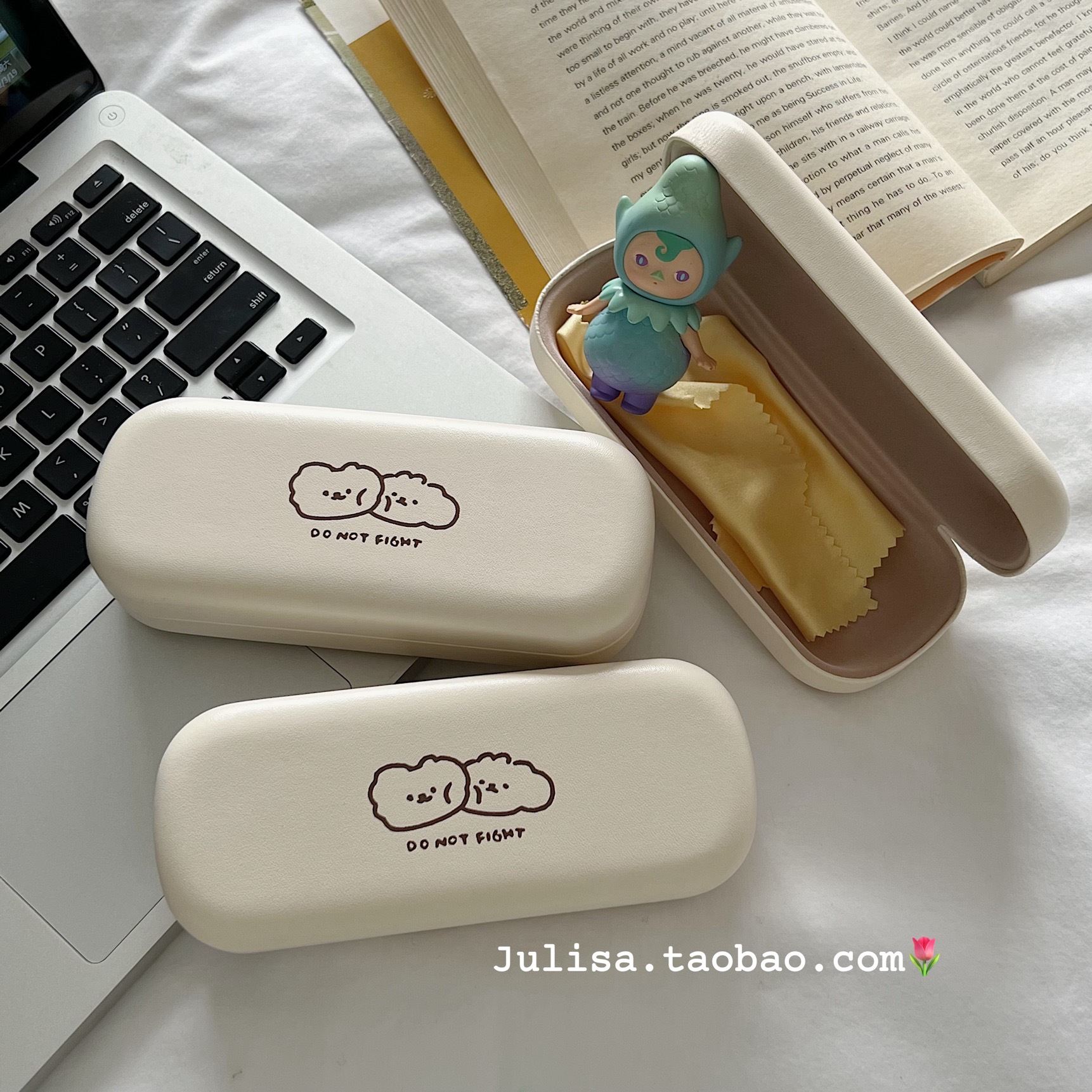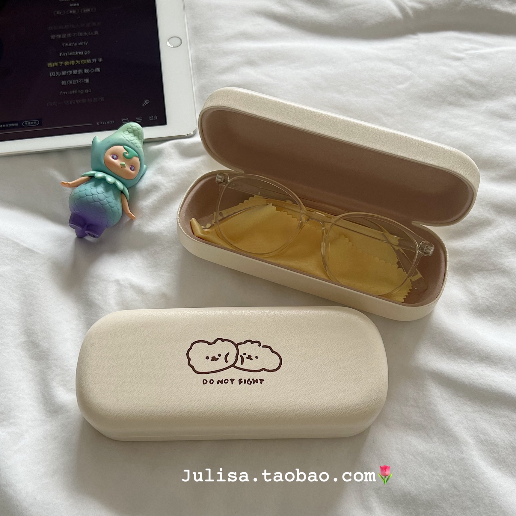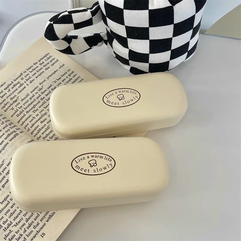 크림색 PU 가죽 안경 케이스 남녀 공용 근시 안경 선글라스 레트로 보관함 곰돌이 패턴