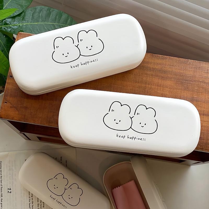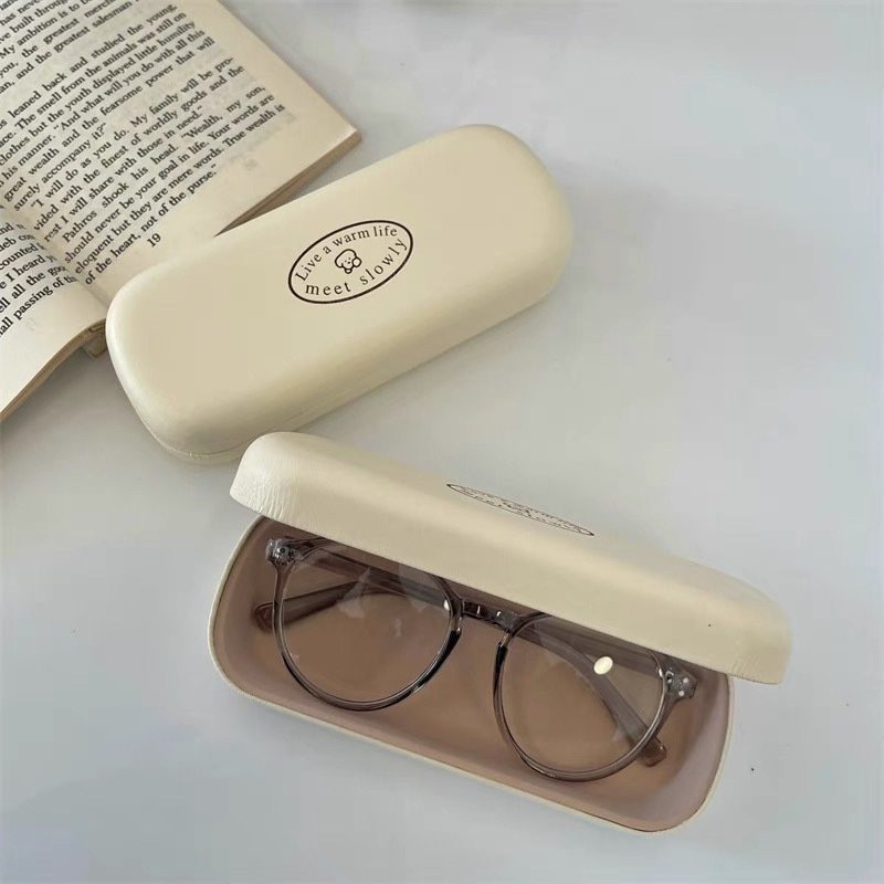 크림색 PU 가죽 안경 케이스 남녀 공용 근시 안경 선글라스 레트로 보관함 곰돌이 패턴스토어 가기