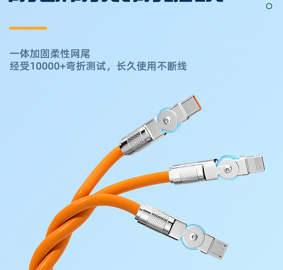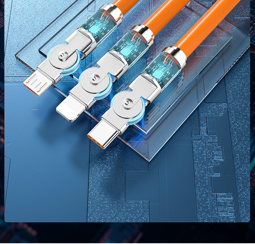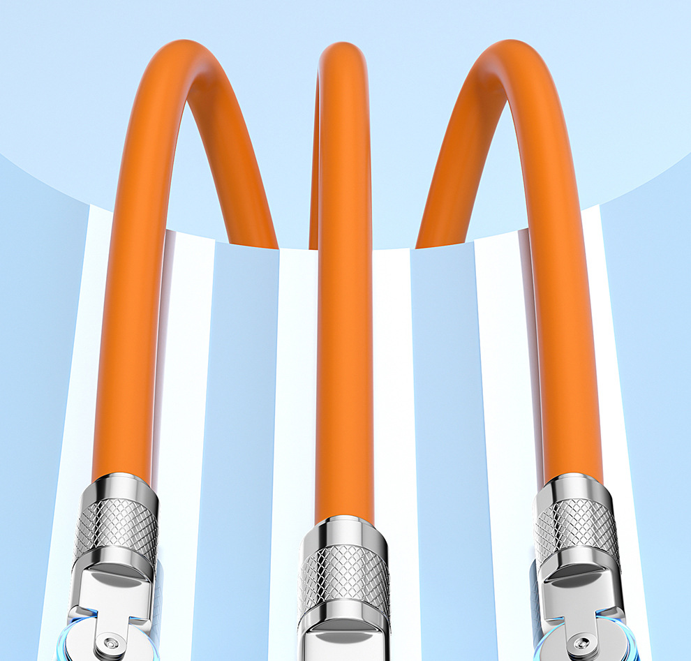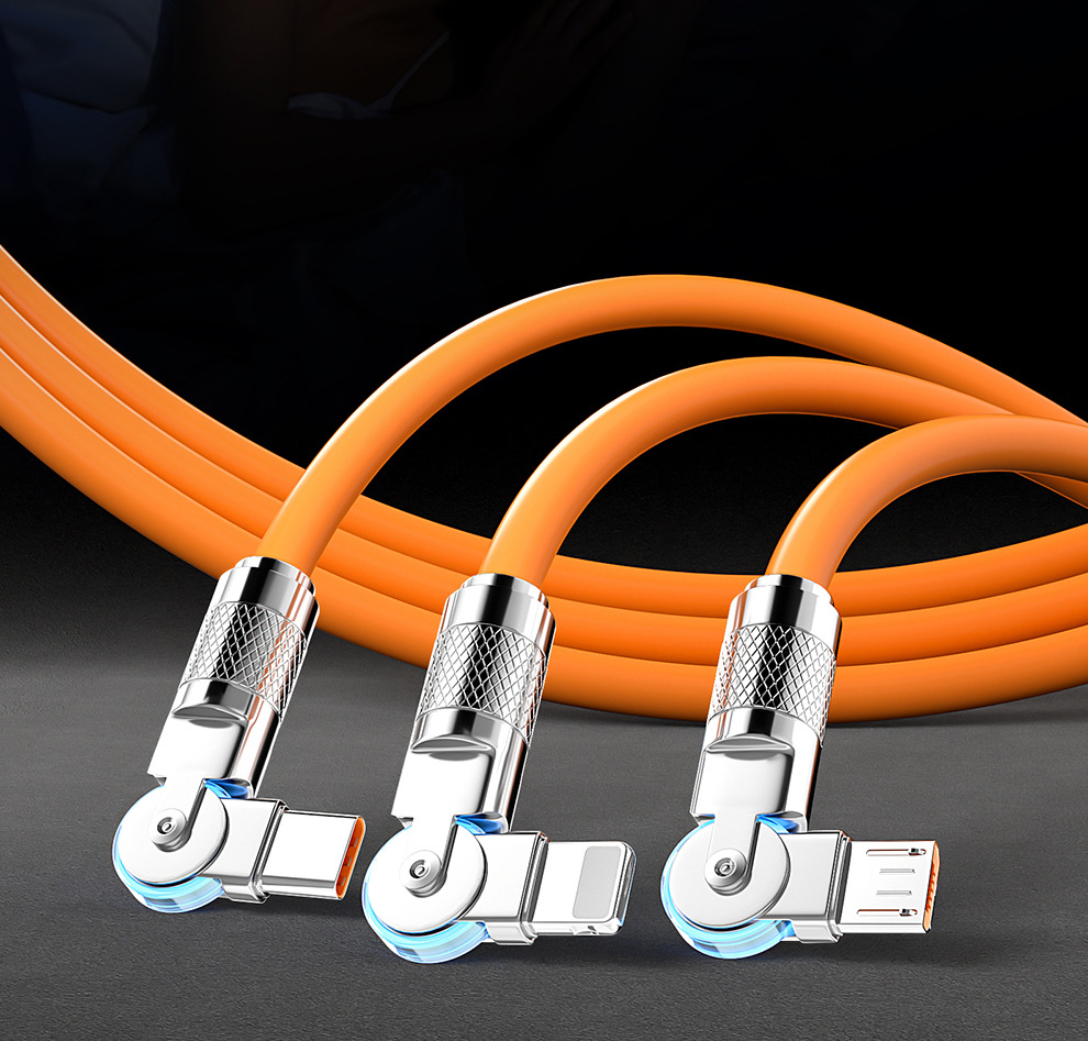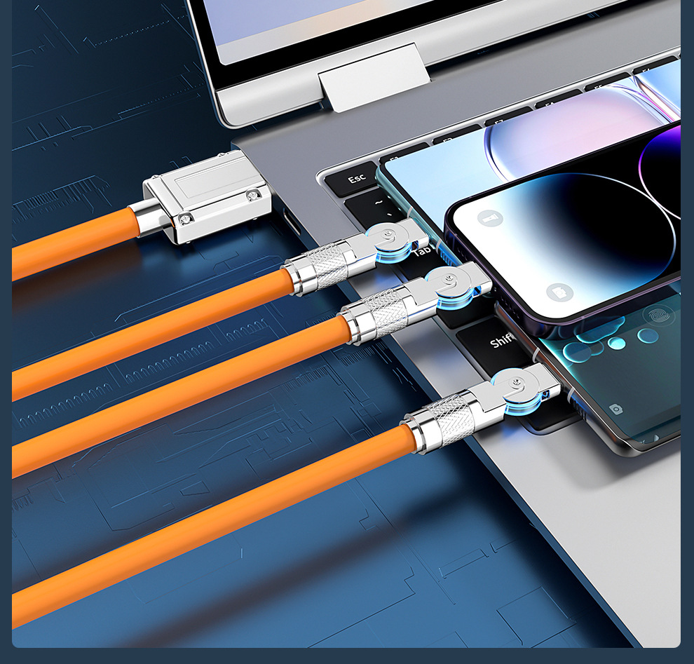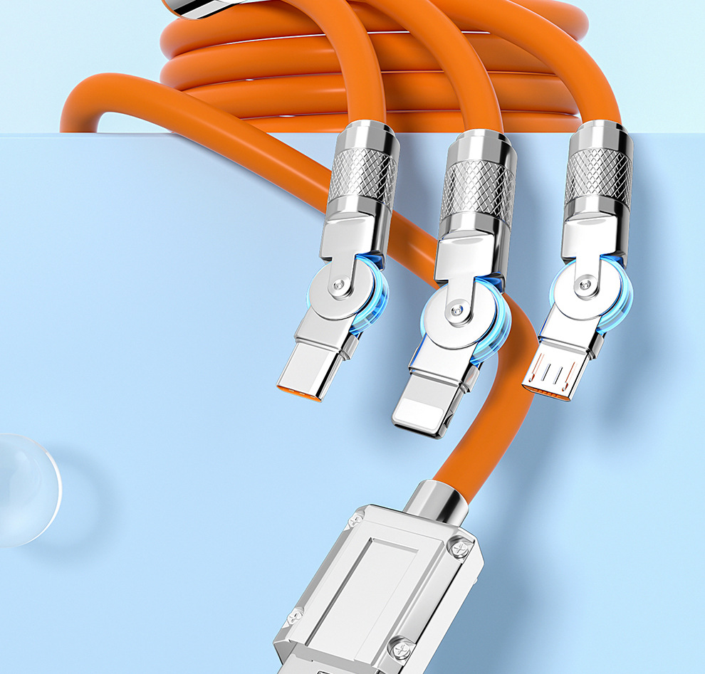 120W 소프트 고무 기계 게스트 회전 1 대 3 데이터 케이블 적합한 안드로이드 화웨이 6A 빠른 충전 3 대 1