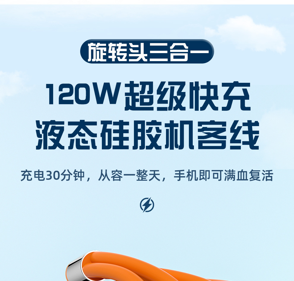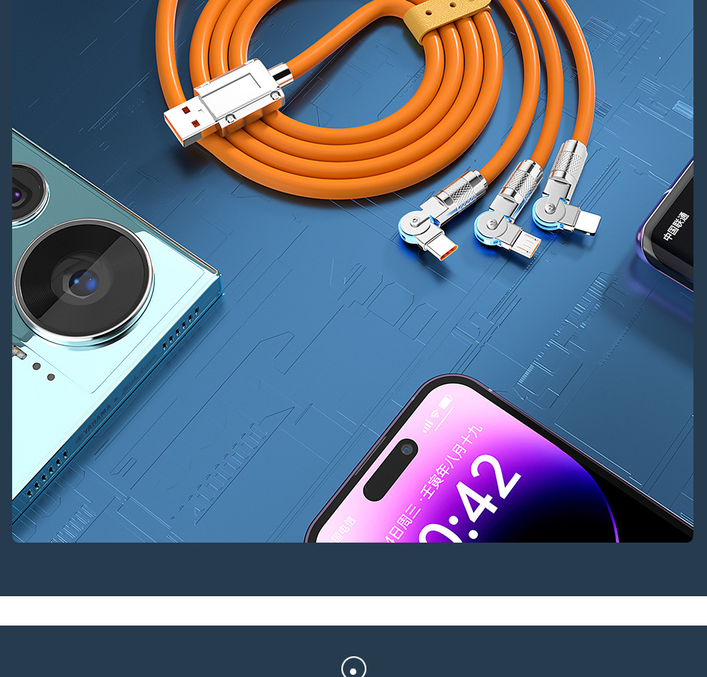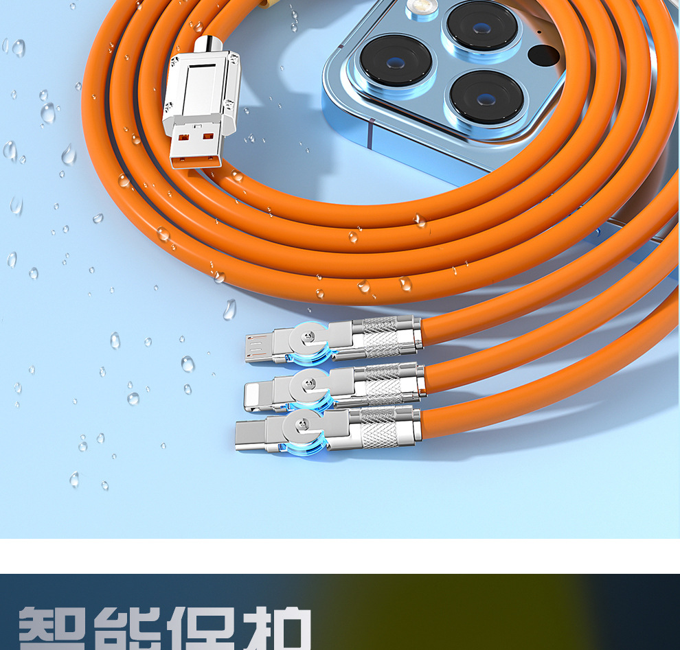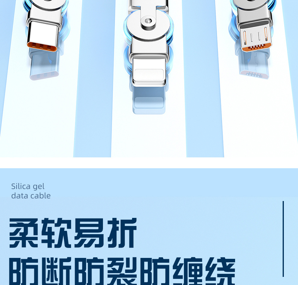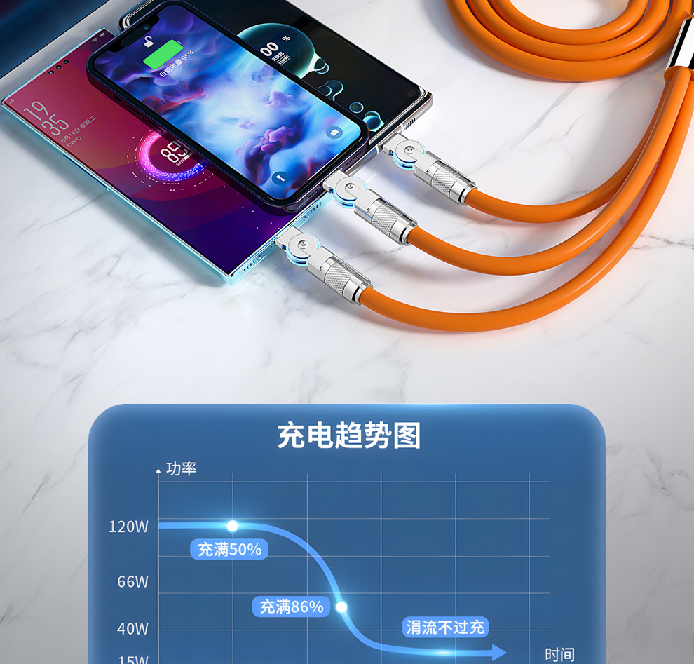 120W 소프트 고무 기계 게스트 회전 1 대 3 데이터 케이블 적합한 안드로이드 화웨이 6A 빠른 충전 3 대 1스토어 가기