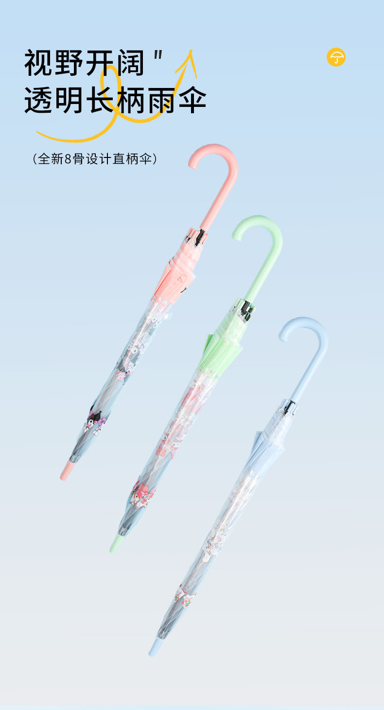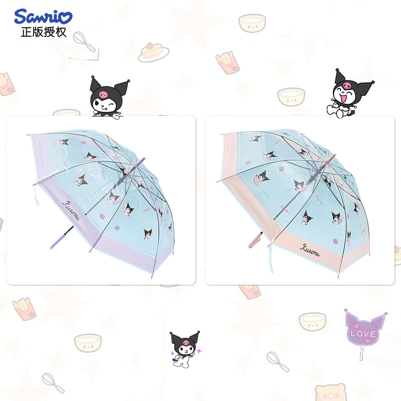 투명 우산 수동 긴 손잡이 고급스러운 어린이 남녀 공용 대형 8골 산리오 쿠로미 우산 햇빛 및 비 겸용 우산스토어 가기