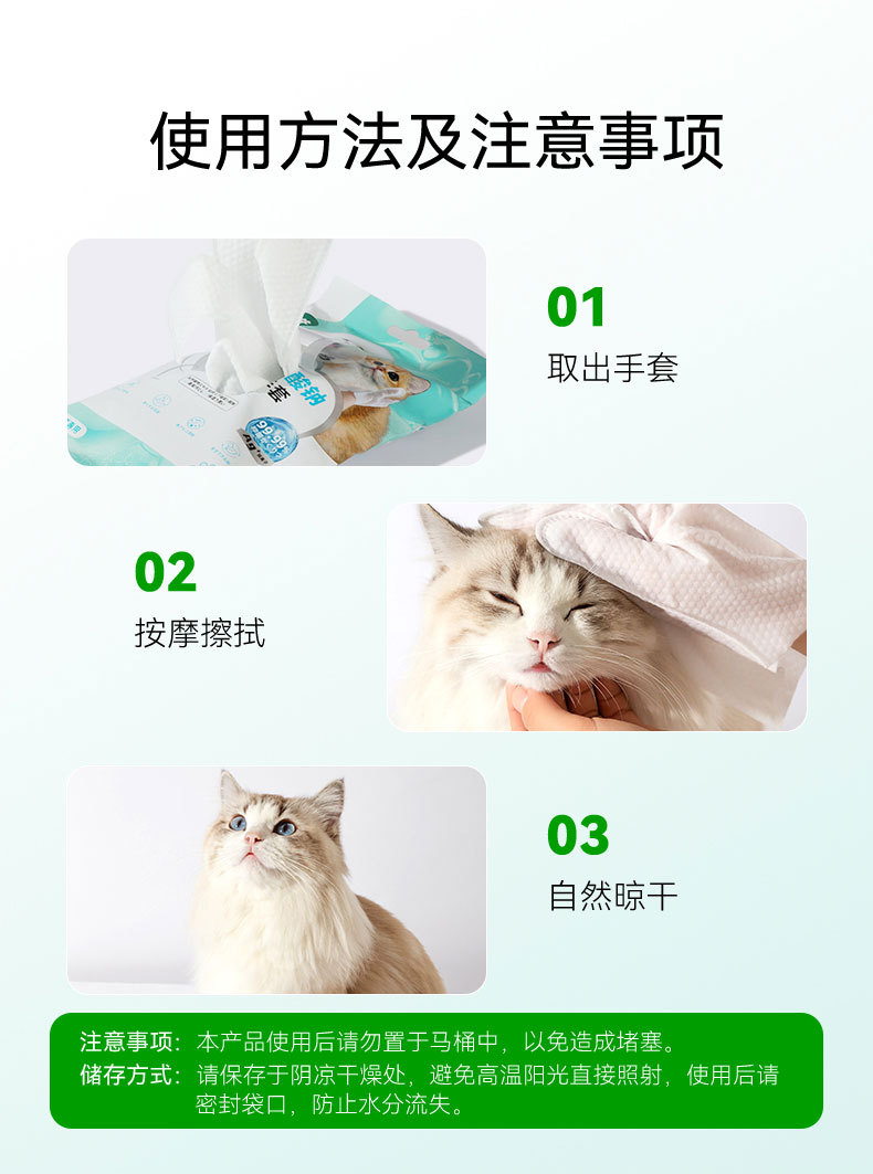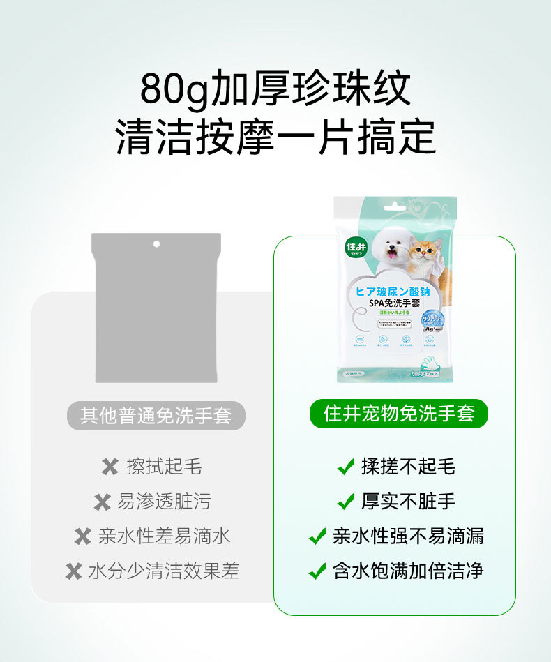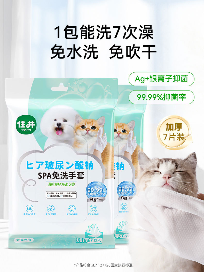 애완 동물 세척없는 장갑 개 목욕 탈취제 청소 물티슈 나트륨 hyaluronate 드라이 클리닝 유물 청소 용품 도매
