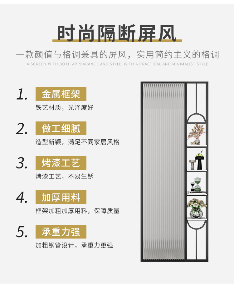 철제 장홍 유리 페인팅 스크린, 심플한 현관, 거실, 사무실, 장식용 칸막이 벽, 라이트 럭셔리스토어 가기
