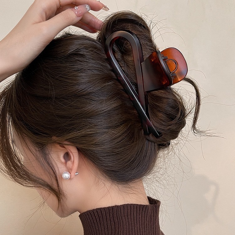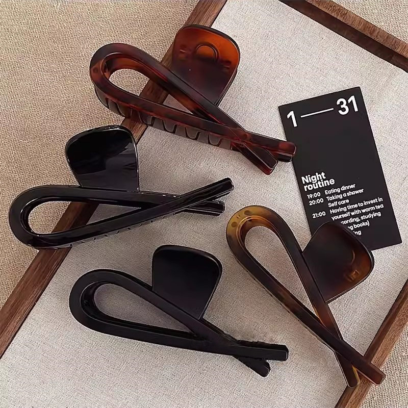 우아한 빈티지 아크릴 그랩 클립 여성의 2024 새로운 하이 엔드 상어 클립 큰 머리 잡아 머리 머리 머리핀스토어 가기
