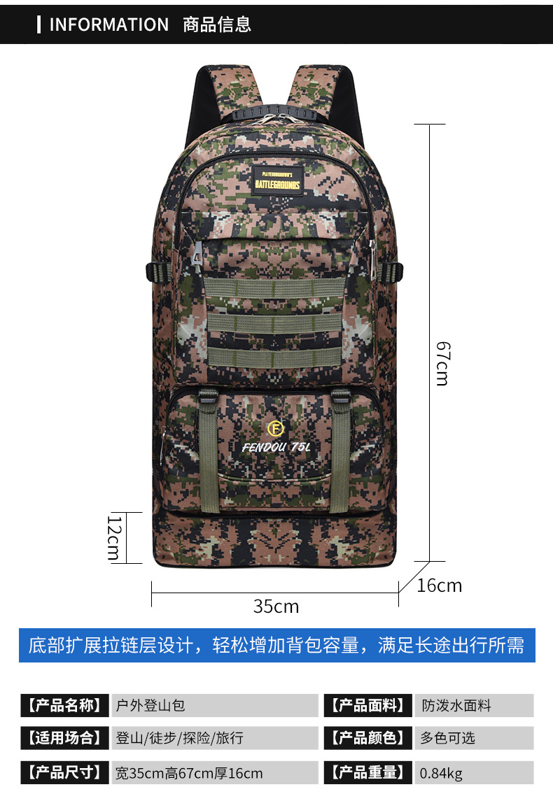 국경 간 대외 무역 배낭 남성 야외 등산 대용량 여행 가방 하이킹 전술 캠핑 배낭