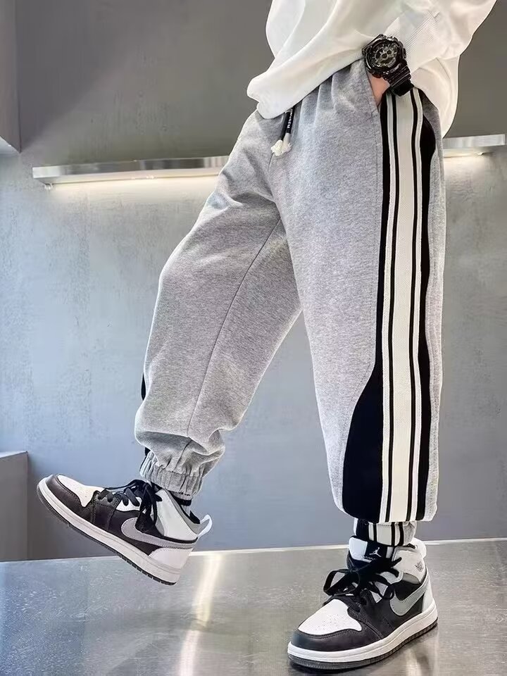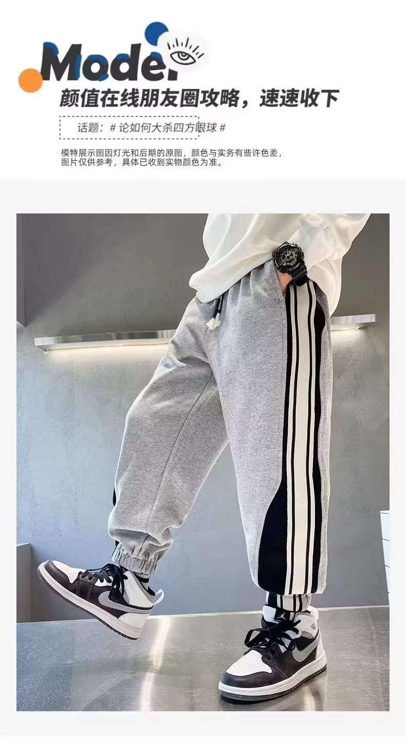 어린이 바지 봄과 가을 새 소년 레이스 업 바지 소녀 발 묶음 바지 중대형 어린이 레이스 업 캐주얼 바지 어린이 스포츠 바지