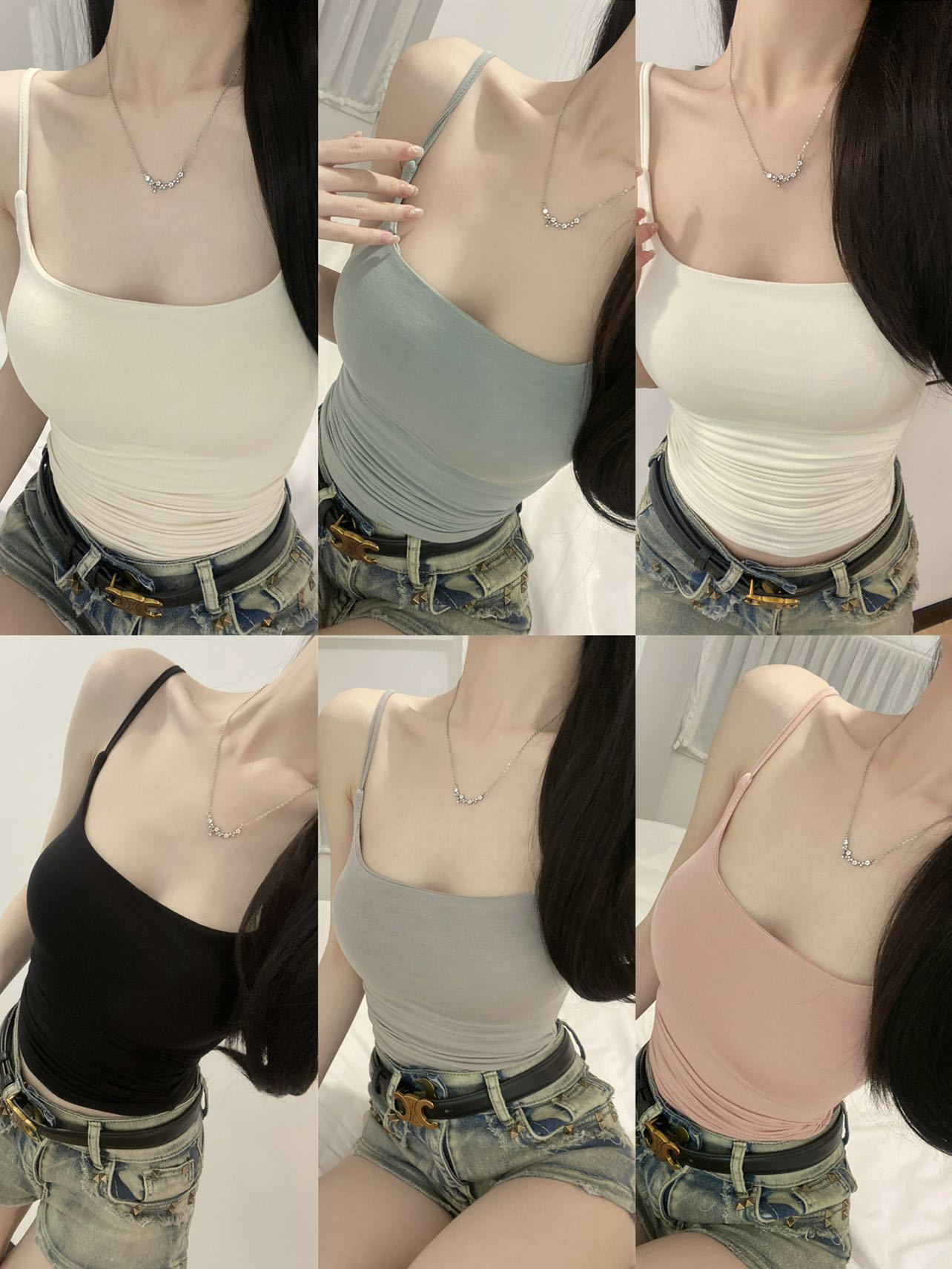 새로운 달콤한 스파이스 소녀 Pleated 허리 디자인 슬링 조끼 벨트 가슴 패드 내부 착용 외부 착용 슬림 핏 아름다운 백탑 여성
