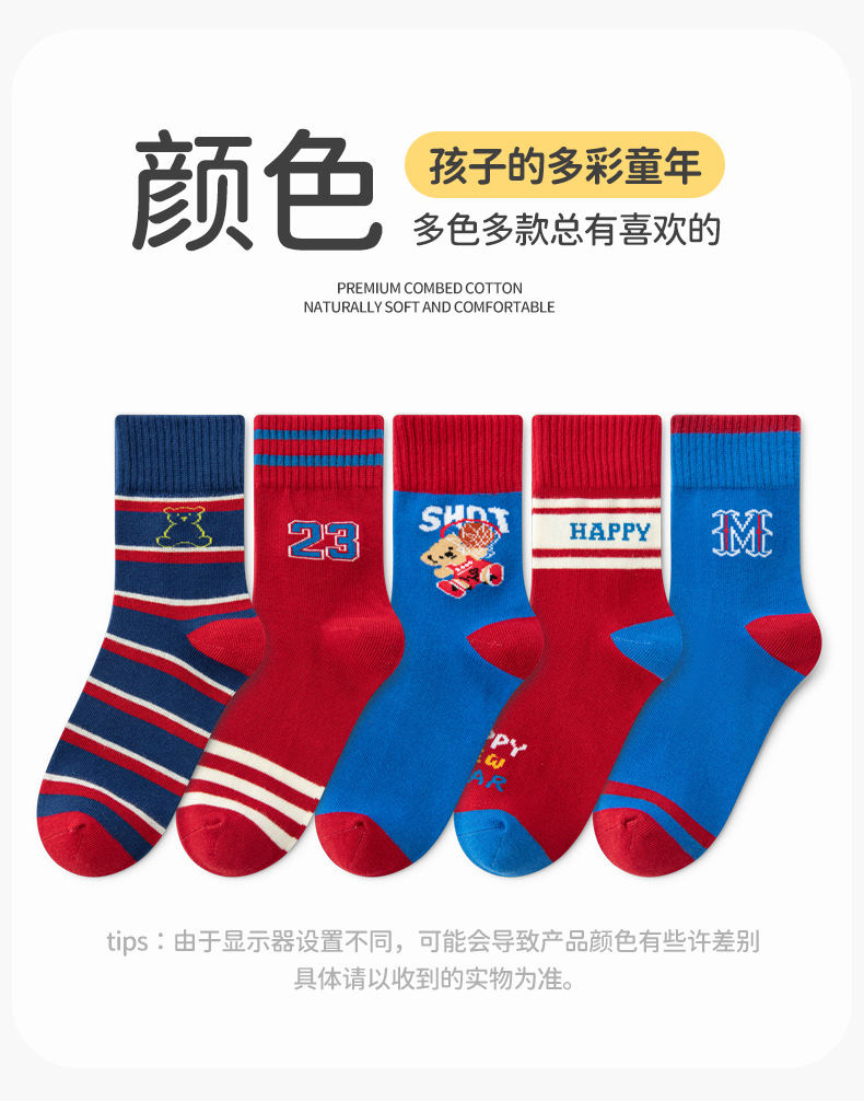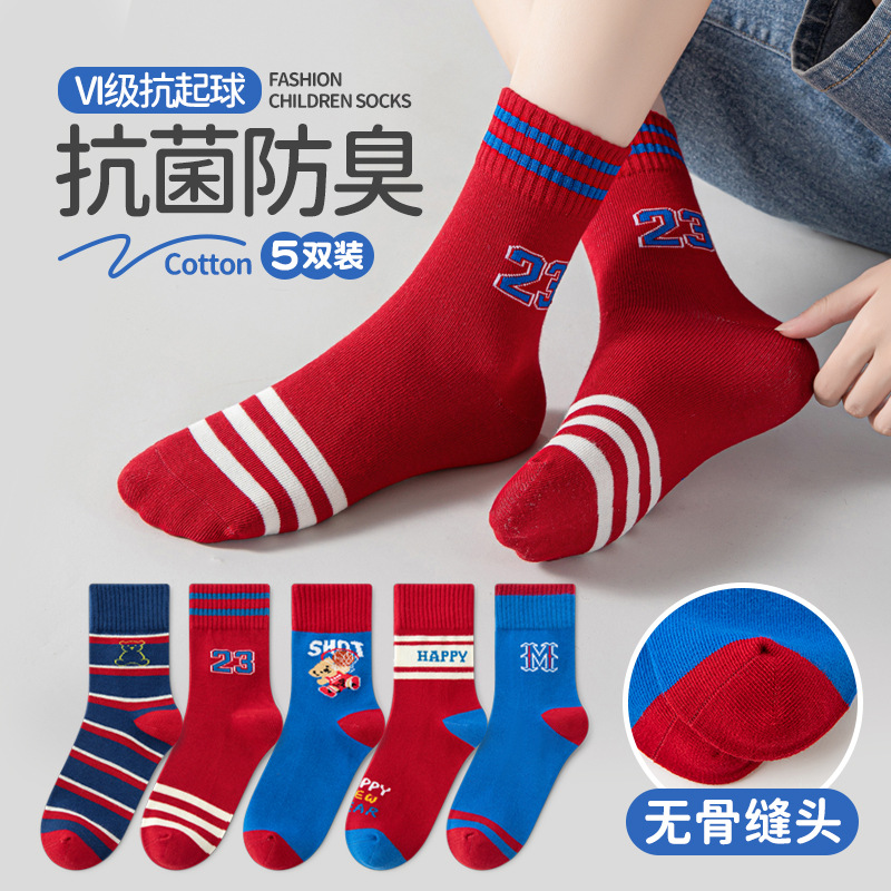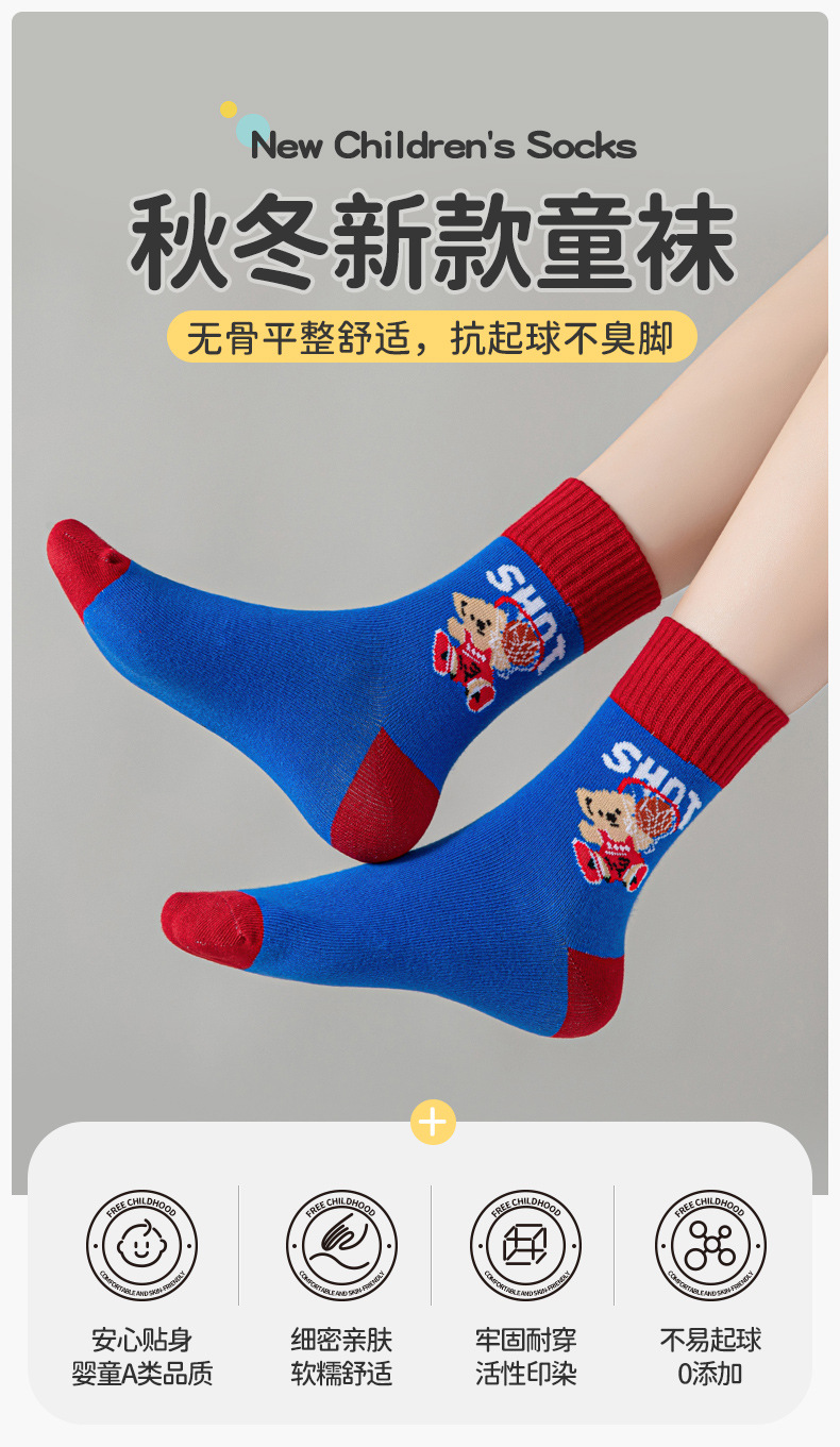 어린이 양말 가을 소년 중형 및 짧은 배럴 뼈없는 땀 흡수 가을 및 겨울 중간 튜브 양말 아기 큰 소년 짧은 양말