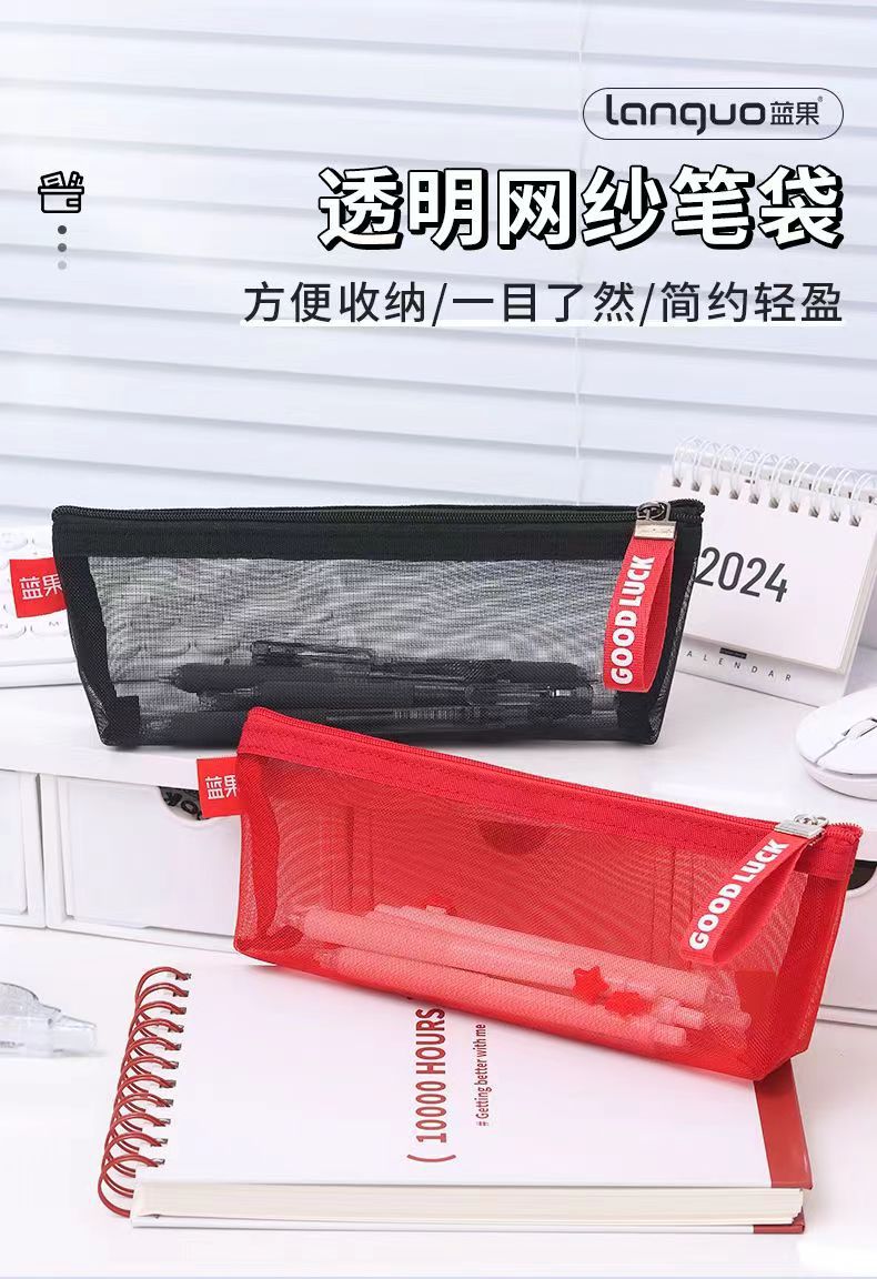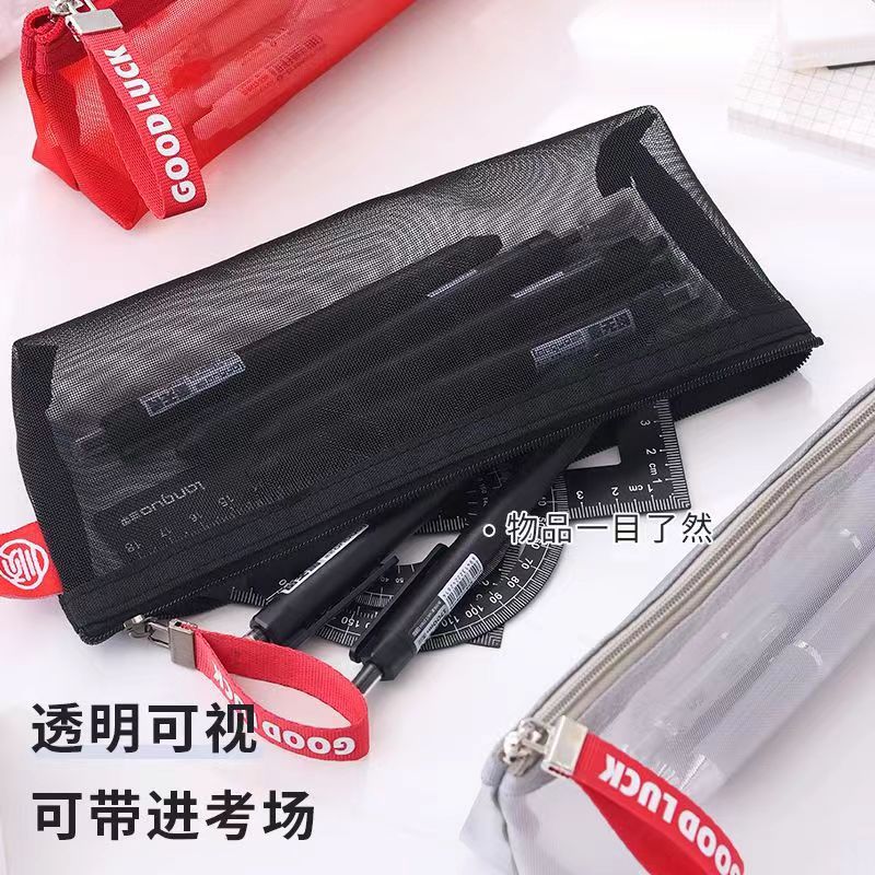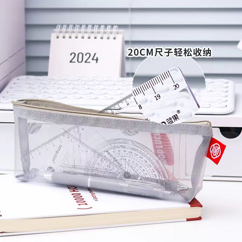 블루 과일 투명 메쉬 보트 모양의 연필 케이스 대용량 간단한 투명 문구 가방 학생을위한 특별 시험 간단한 보관스토어 가기