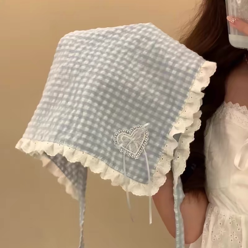 [복숭아 차] 한 메이 (Han Mei) 는 여름에 파란색 스카프를 좋아하여 휴가 및 정원 삼각형 스카프 머리 장식을 위해 해변으로 여행합니다.스토어 가기