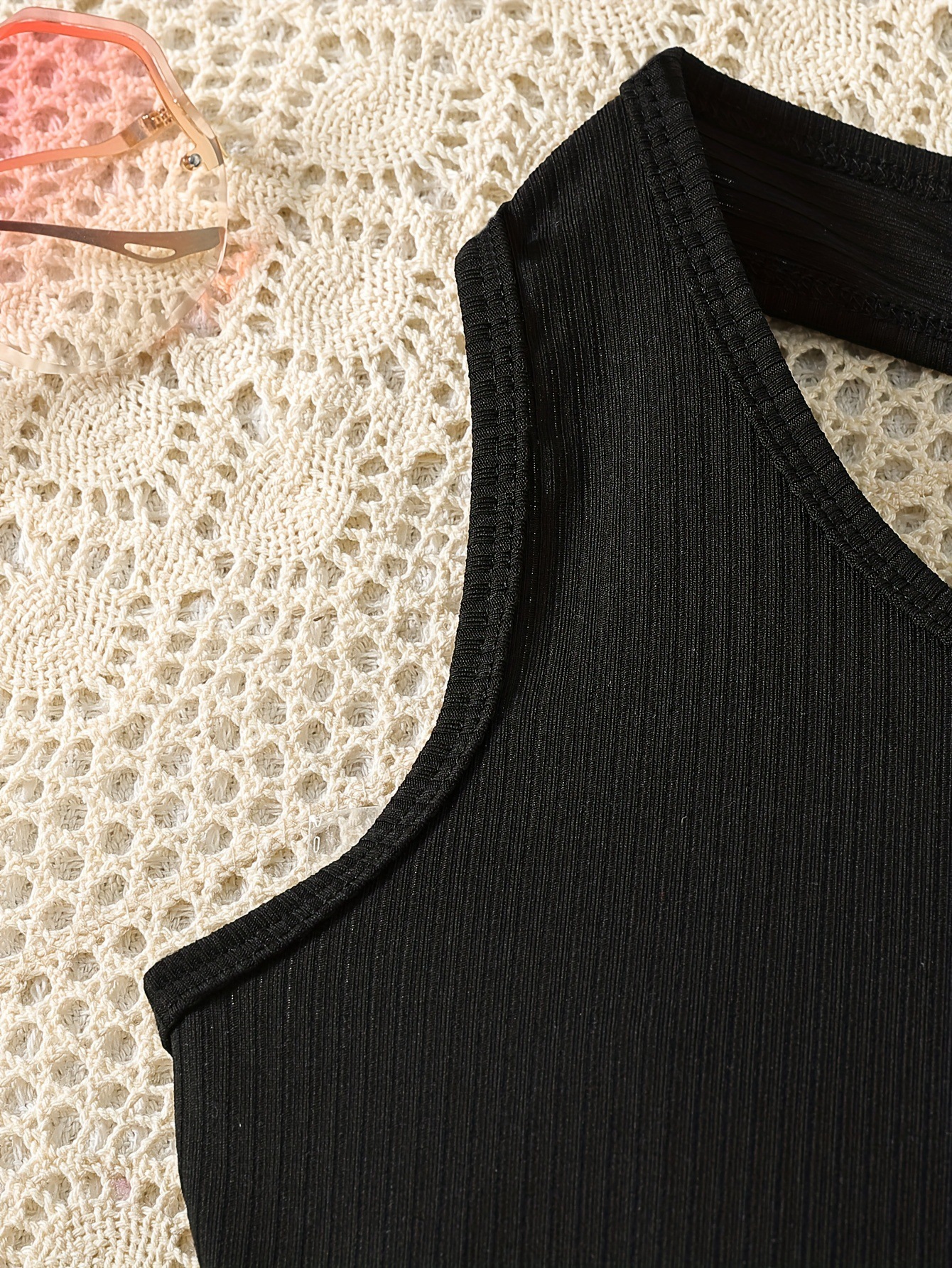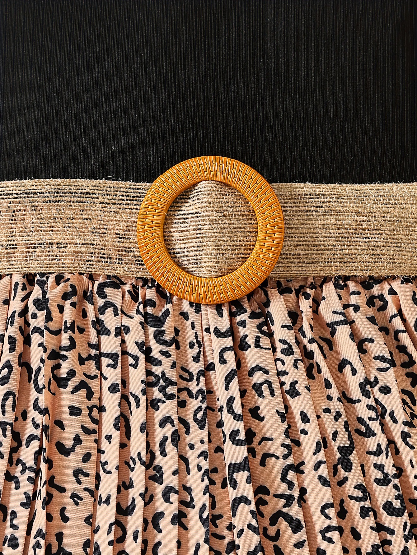 2024 유럽과 미국 스타일의 국경 아동복 소녀 단색 조끼 벨트 큰 어린이 세트 달린 넓은 다리 주름 바지
