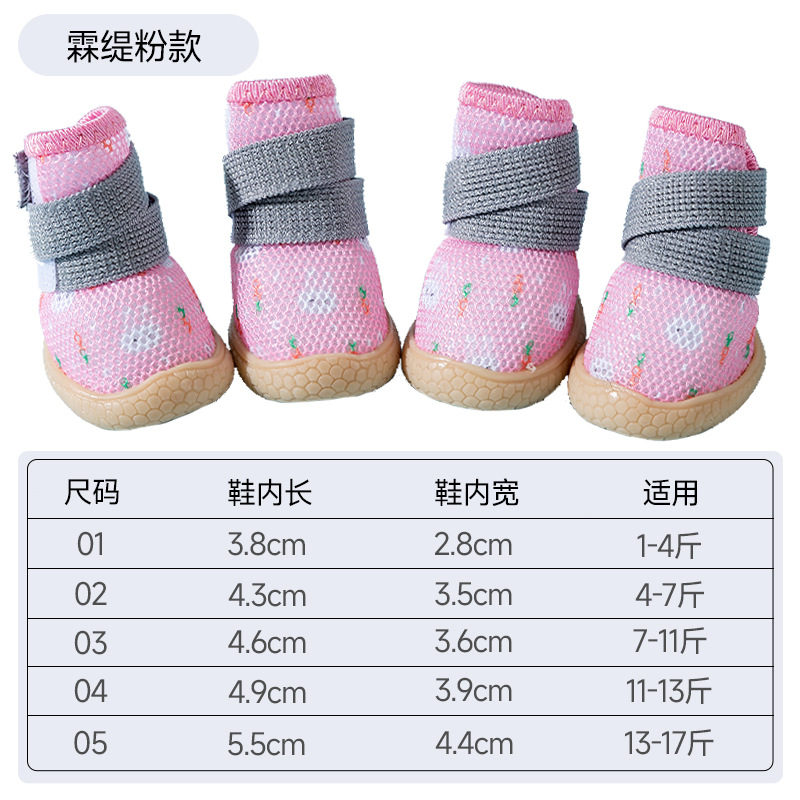 전체 인쇄 통기성 애완 동물 운동화 개 봄 여름 얇은 먼지 방지 방수 테디 신발 걷기 개