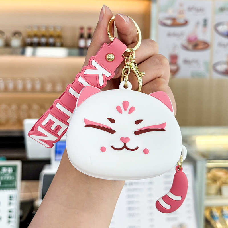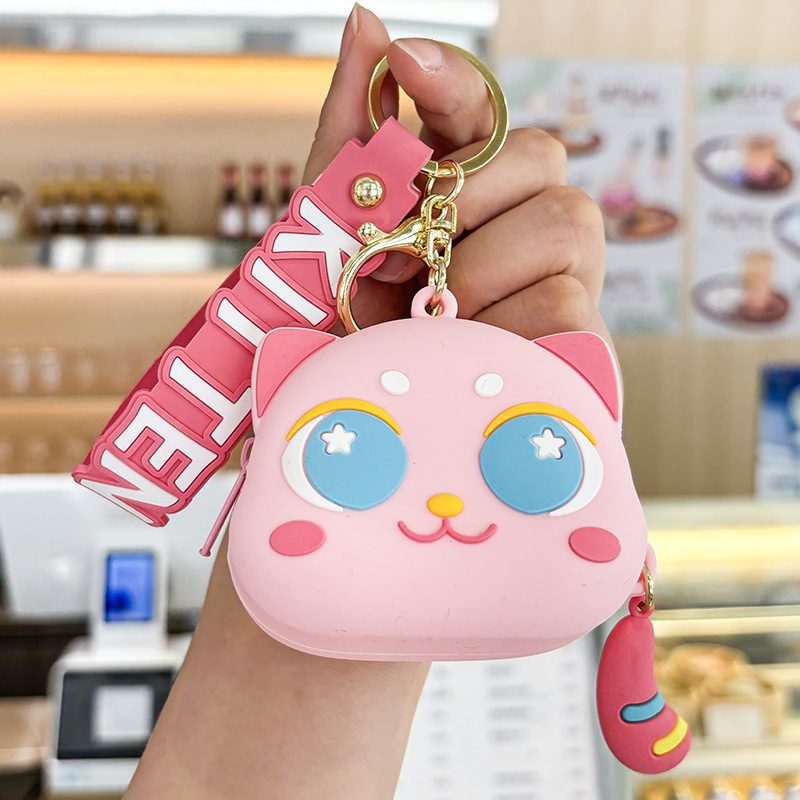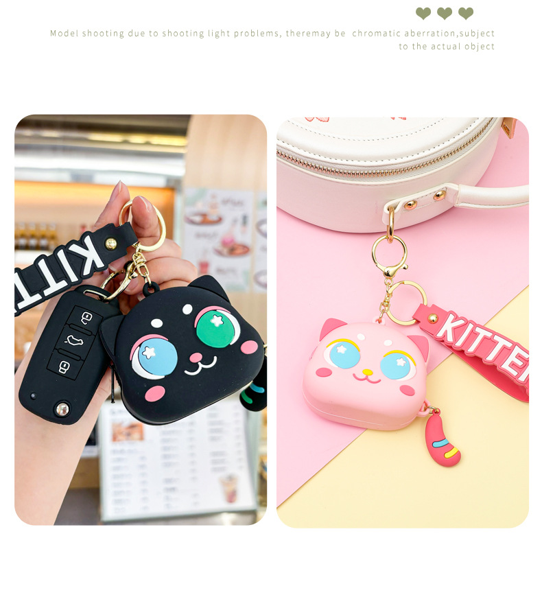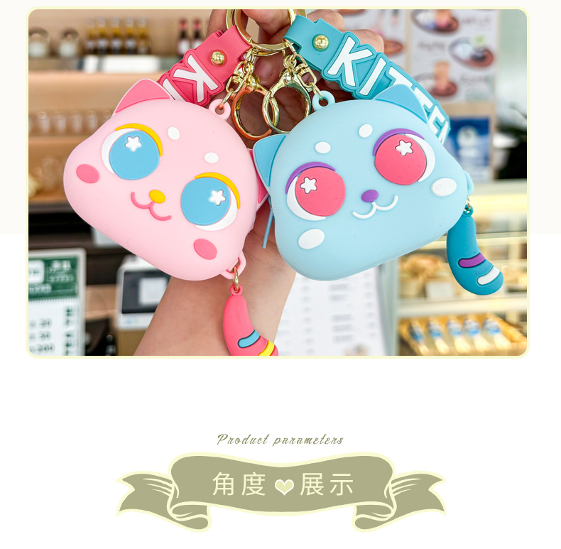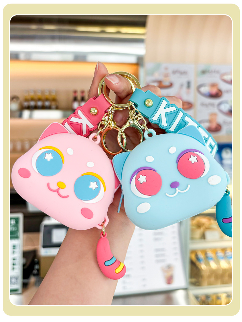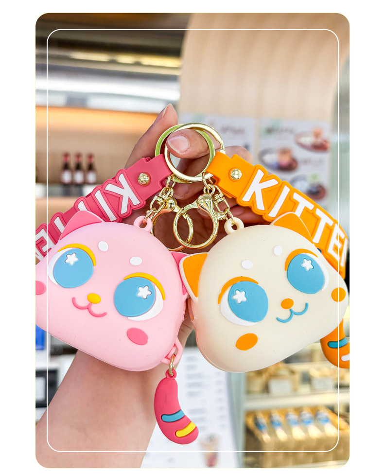 어린이와 학생 휴대용 실용적인 학교 가방 지갑 동전 지갑 키 체인 펜던트 실리콘 만화 귀여운 고양이 선물