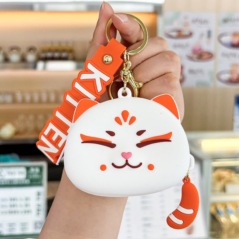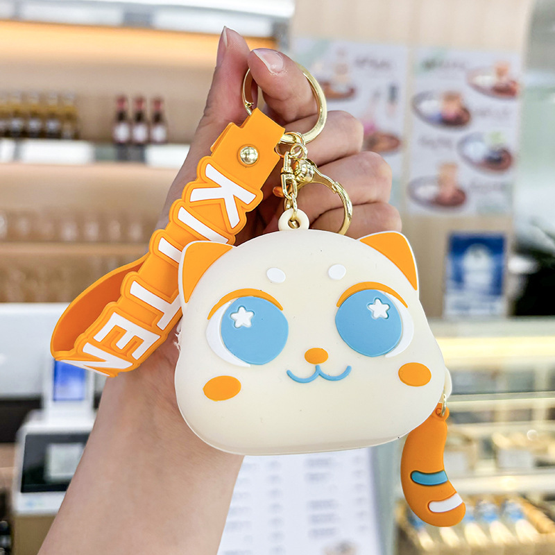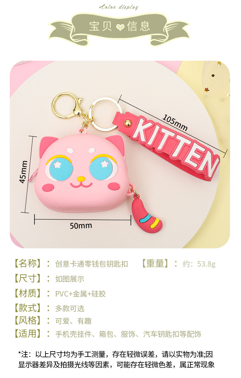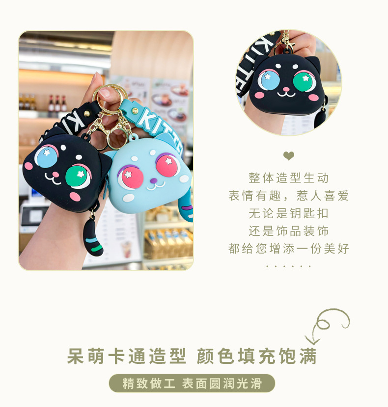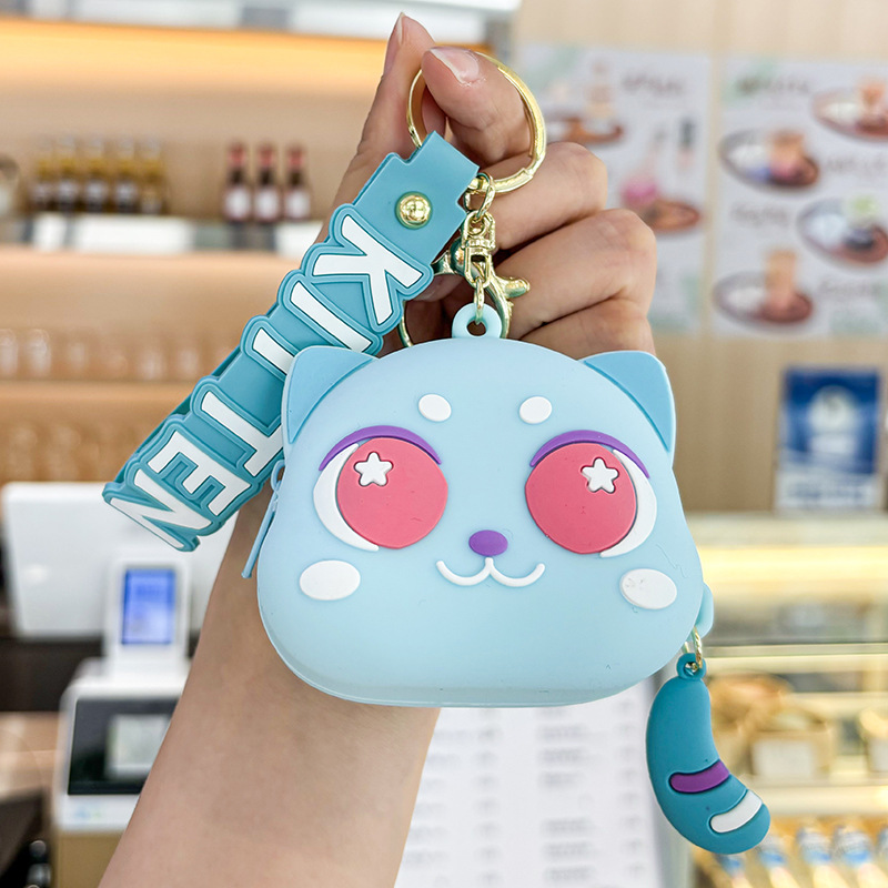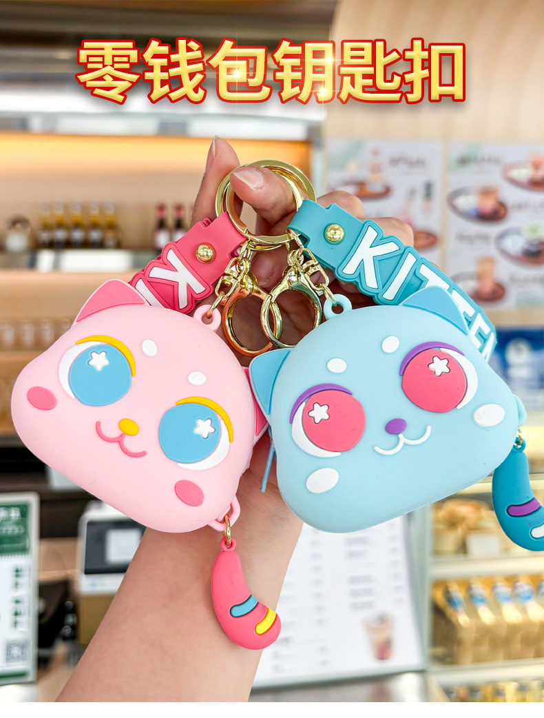 어린이와 학생 휴대용 실용적인 학교 가방 지갑 동전 지갑 키 체인 펜던트 실리콘 만화 귀여운 고양이 선물