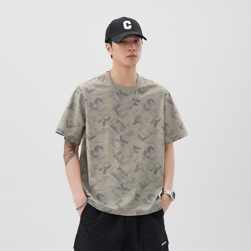 라운드 넥 반팔 티셔츠 남자 여름 2024 새로운 유행 올 매치 아이스 실크 퀵 드라이 프린트 루즈 캐주얼 티셔츠스토어 가기