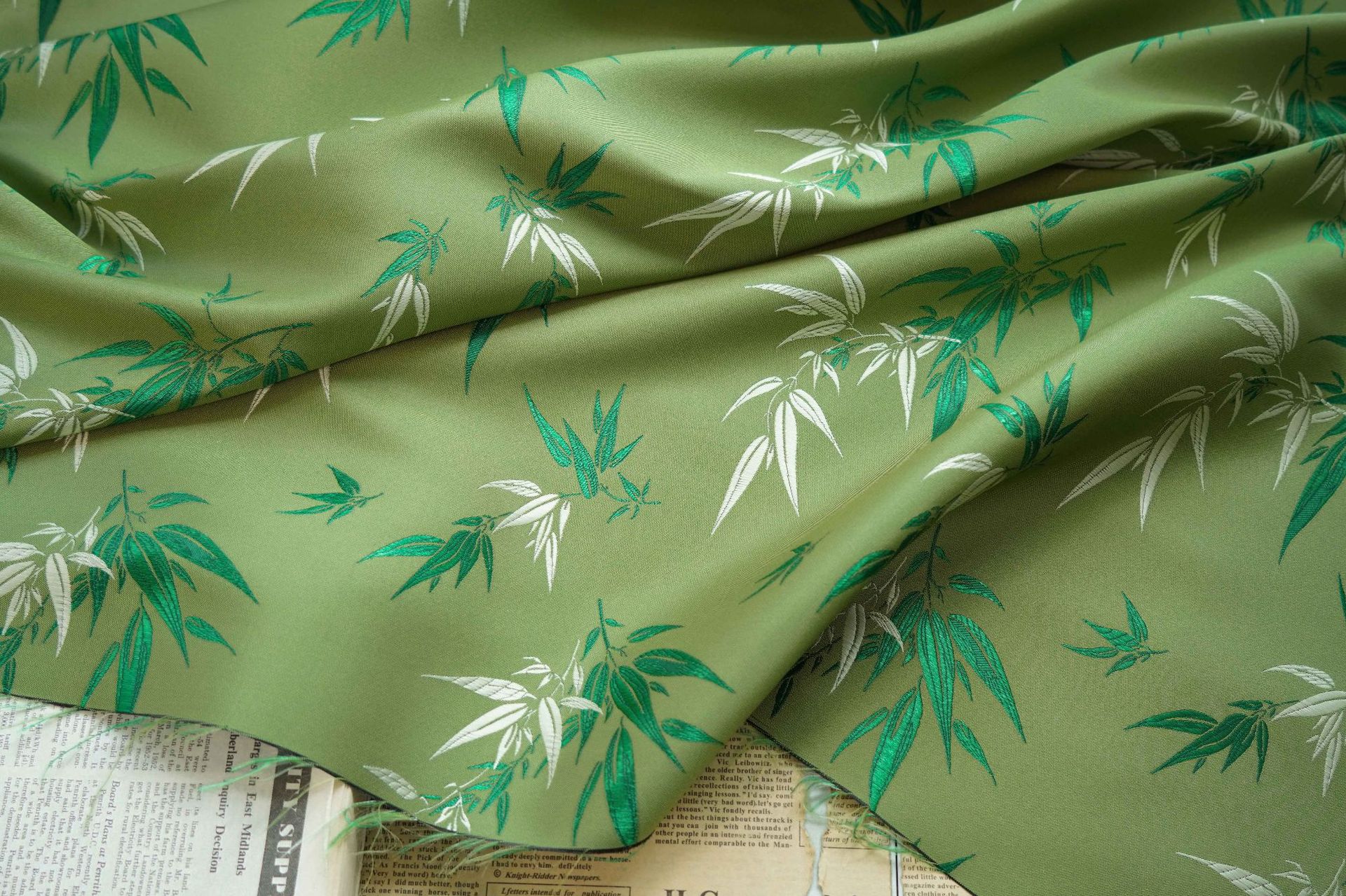 중국 스타일 녹색 대나무 잎 가방 탕 자카드 원단 쿨 청삼 원사 염색 조끼 Diy Sachet 원단