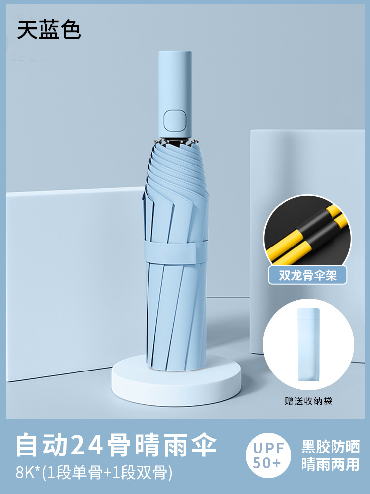 • 전자동 [24개의 유리섬유 방풍 우산 갈비뼈 - 맑은 날과 비오는 날 모두 사용 가능] 헤이즈 블루