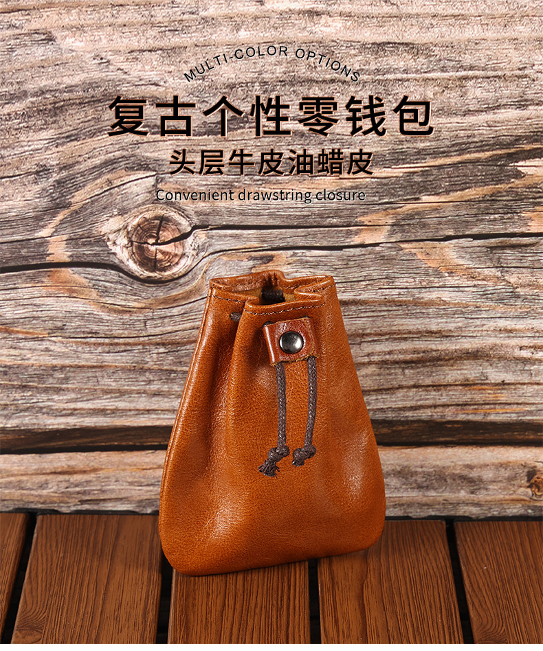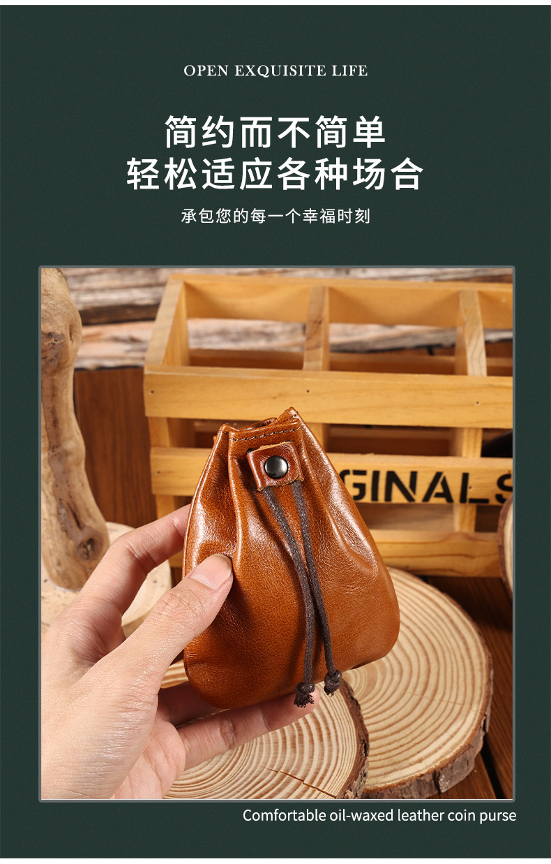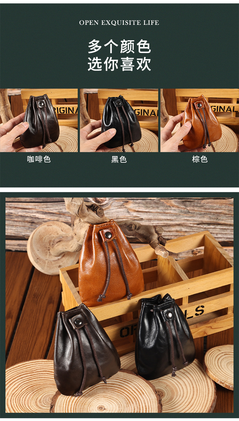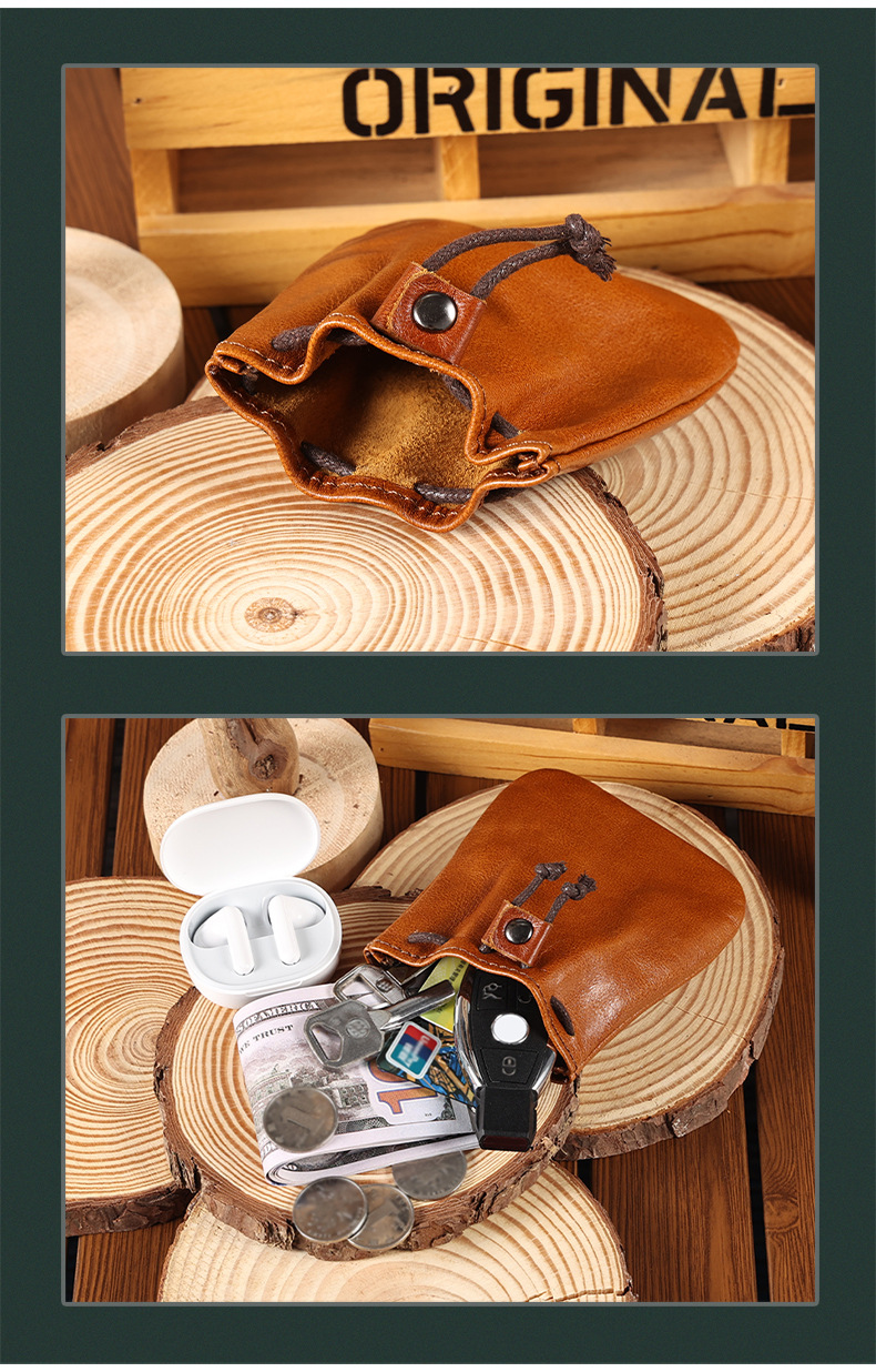 새로운 스타일 Cowhide 틈새 빈티지 작은 동전 지갑 동전 헤드셋 저장 가방 가죽 끈 미니 작은 지갑 트렌디스토어 가기
