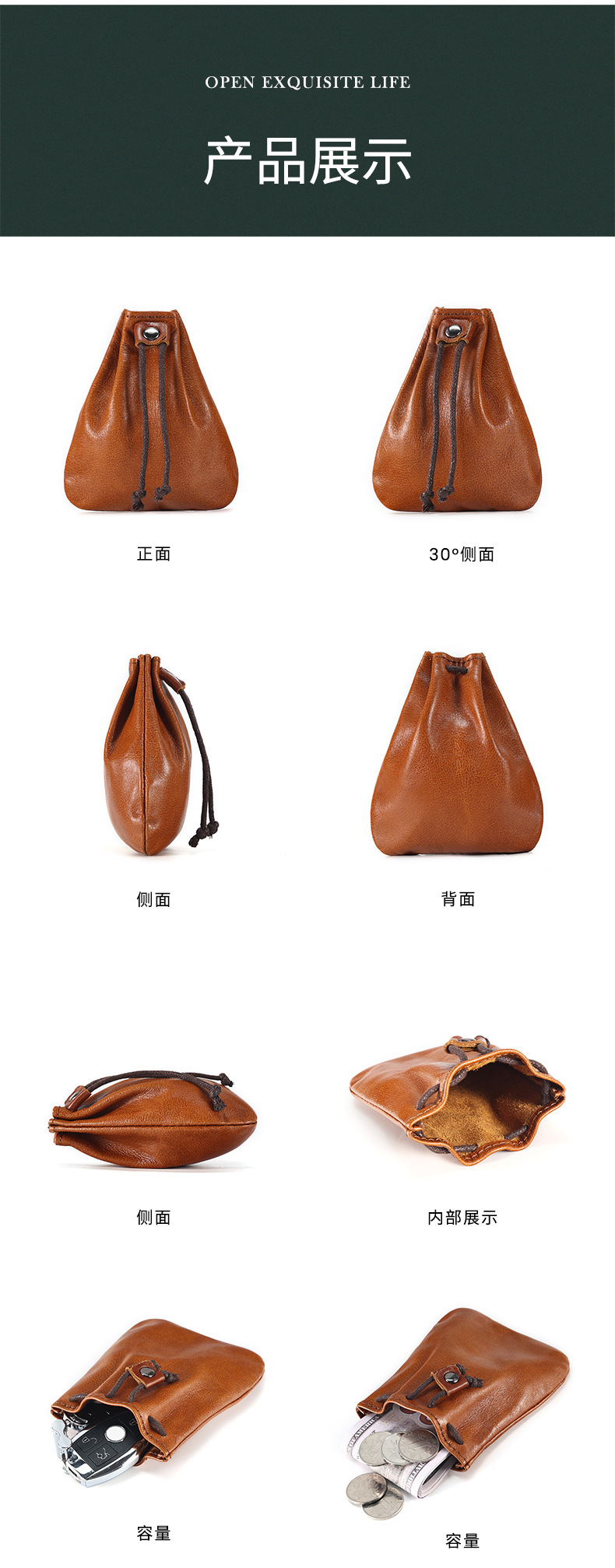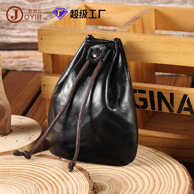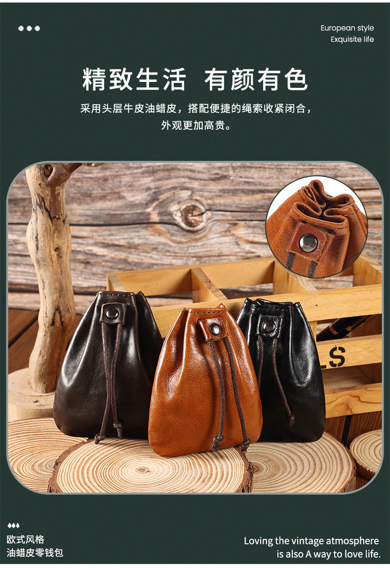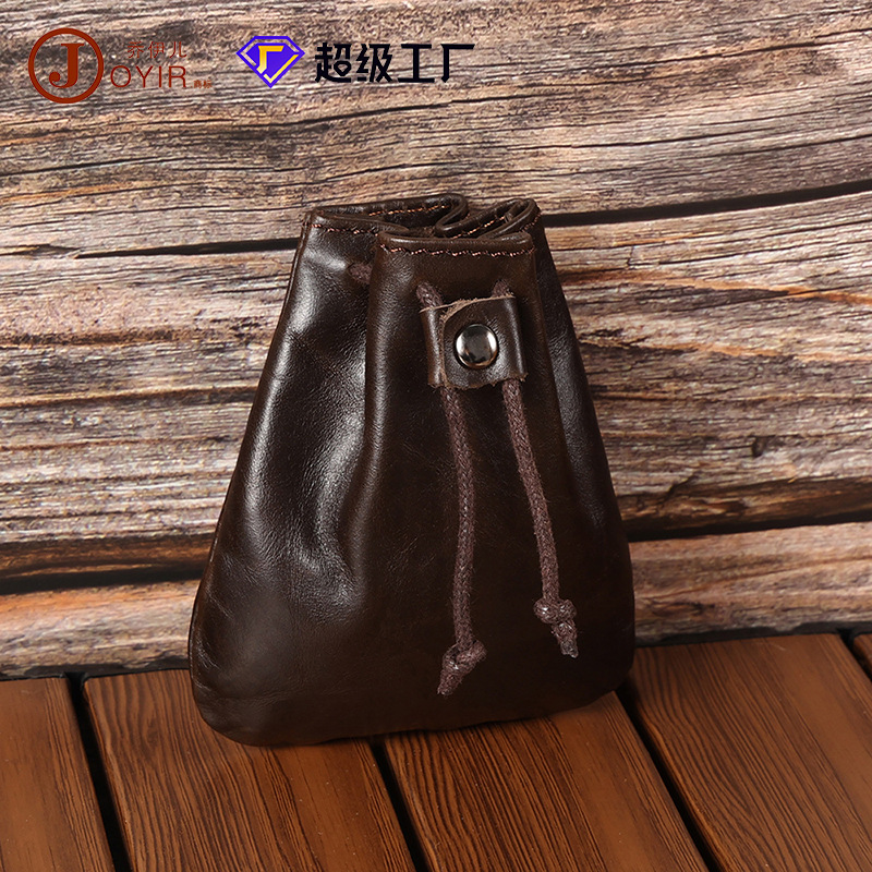 새로운 스타일 Cowhide 틈새 빈티지 작은 동전 지갑 동전 헤드셋 저장 가방 가죽 끈 미니 작은 지갑 트렌디스토어 가기