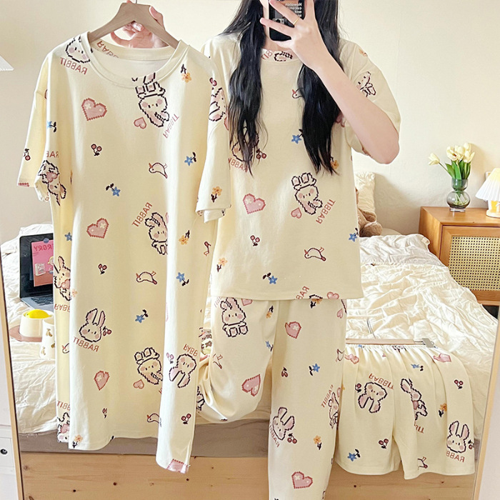 뉴 밀크 실크 4 피스 파자마 여성 여름 달콤한 잠옷 얇은 반팔 반바지 바지 홈 의류 세트스토어 가기