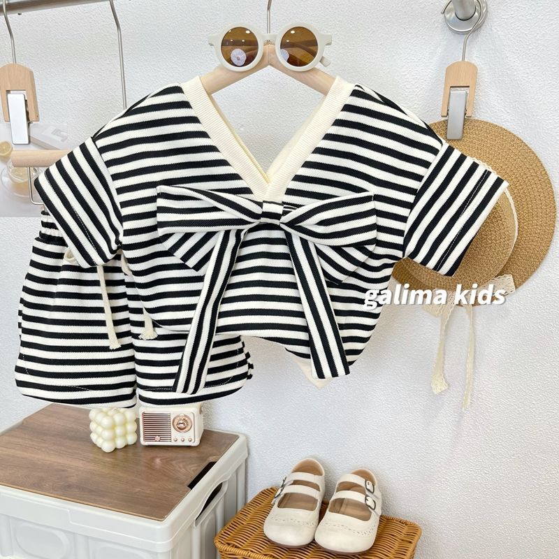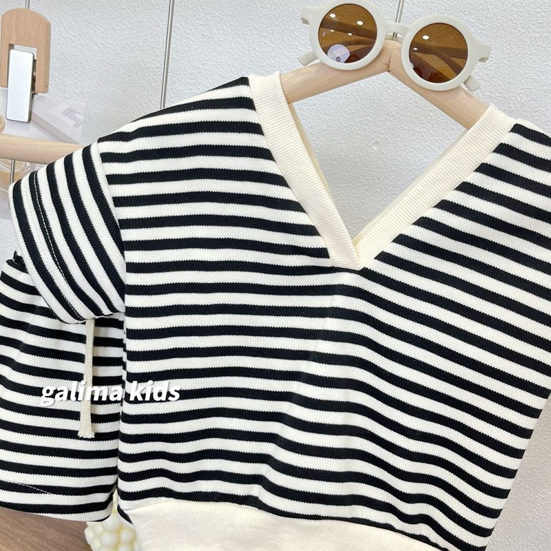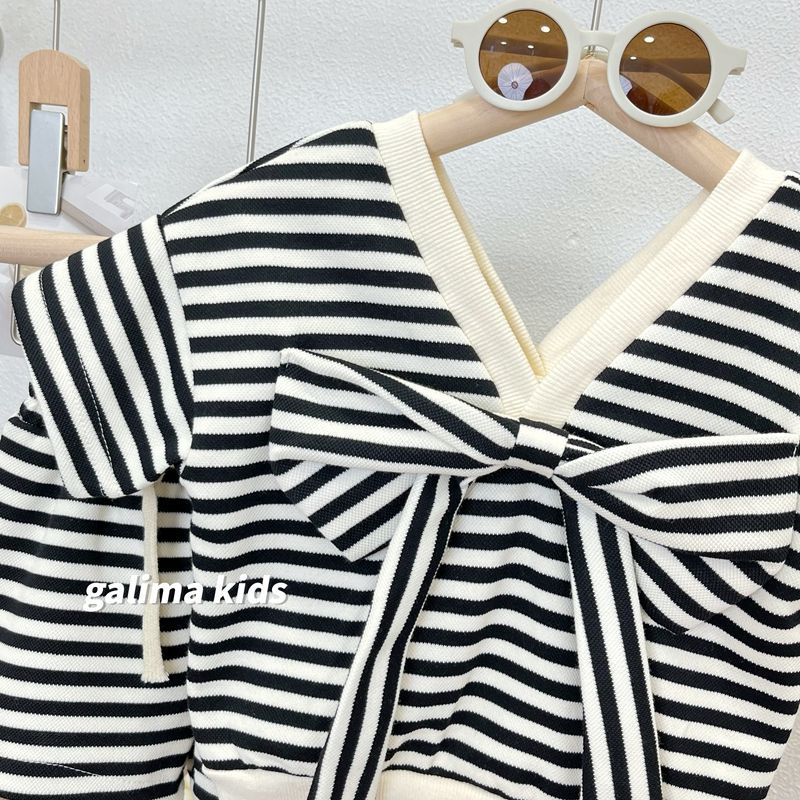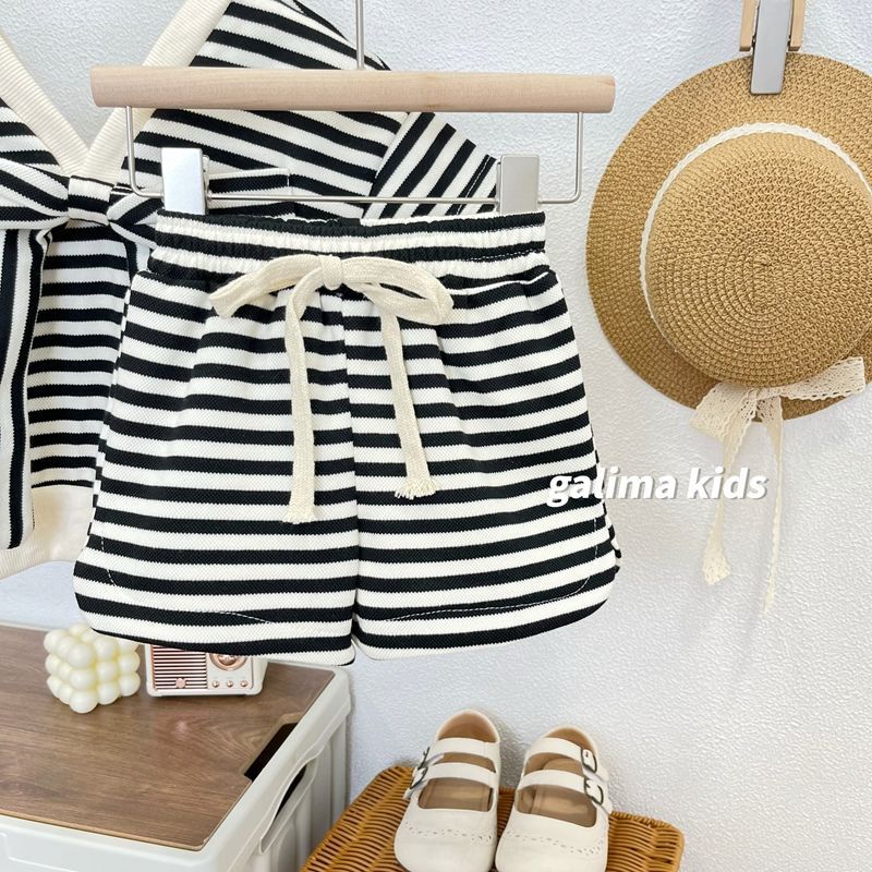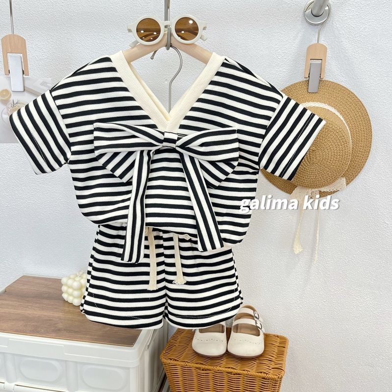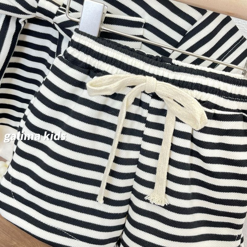 여자 여름 투피스 2024 새로운 패션 어린이 여름 줄무늬 풀오버 캐주얼 한국 도파민 착용