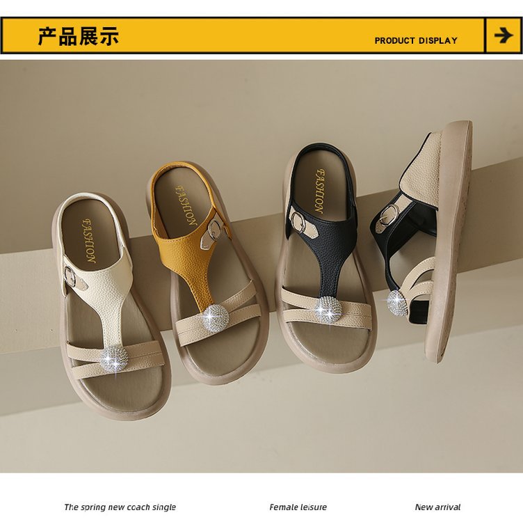 국경 간 플러스 사이즈 플랫폼 로마 샌들 2024 여름 새로운 오픈 발가락 라인스톤 페달 컬러 블록 비치 슬리퍼
