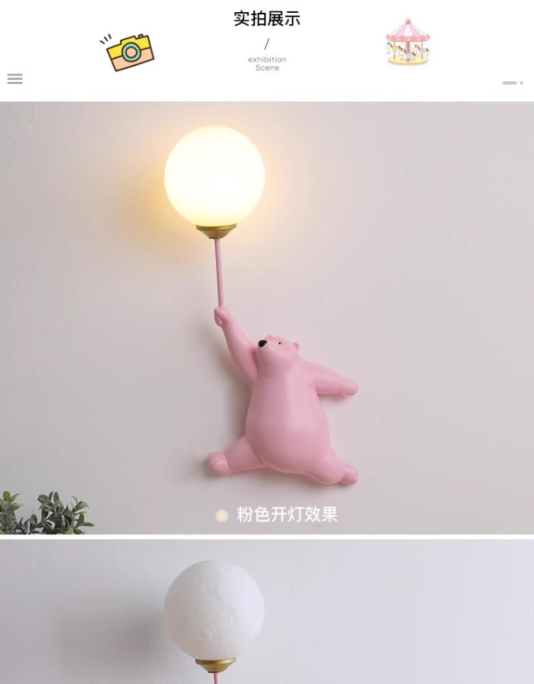 • 핑크 곰 벽 램프