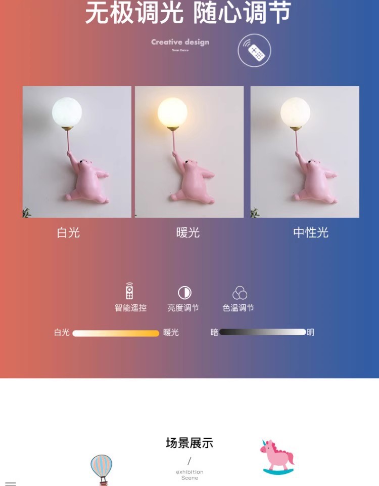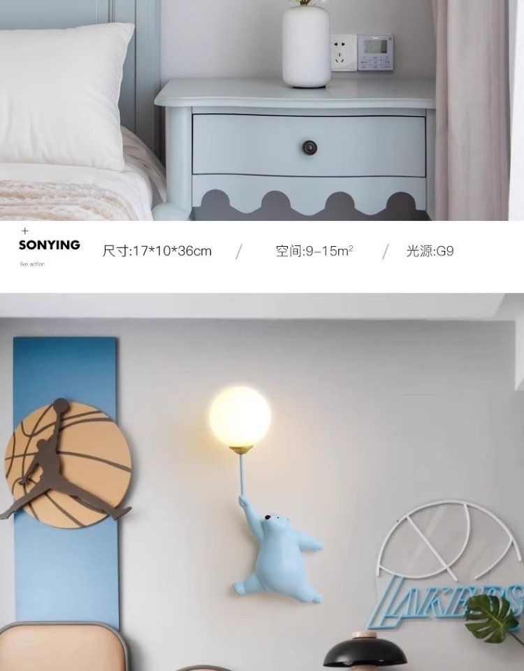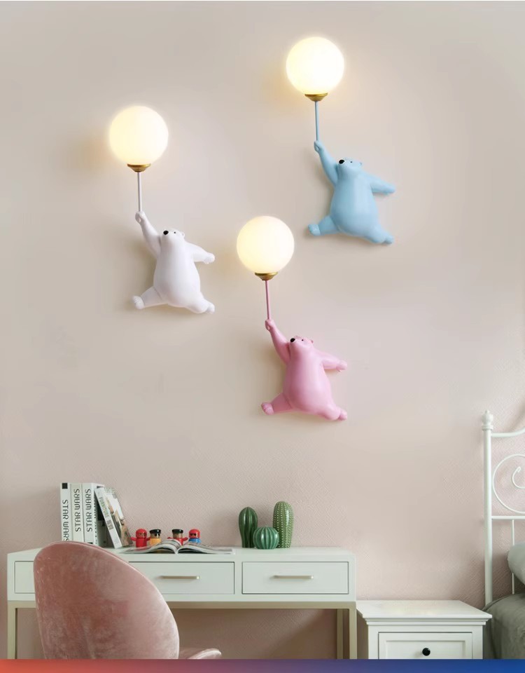 간단한 현대 소년과 소녀 어린이 방 만화 곰 벽 램프 연구 침실 침대 옆 통로 따뜻한 장식 램프