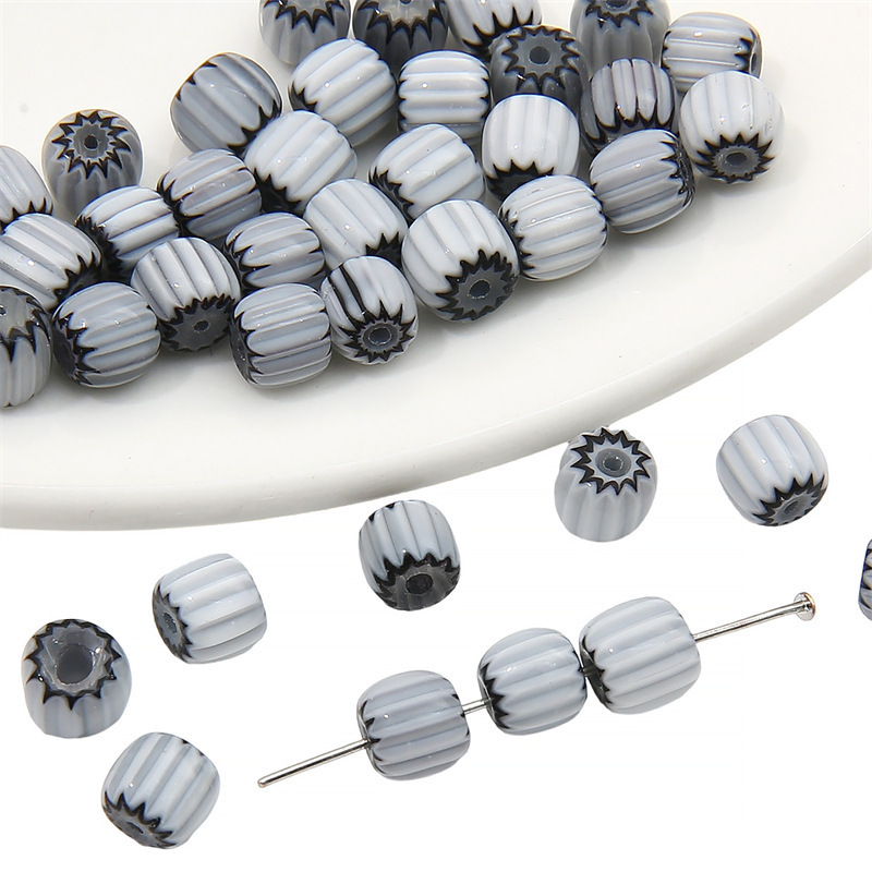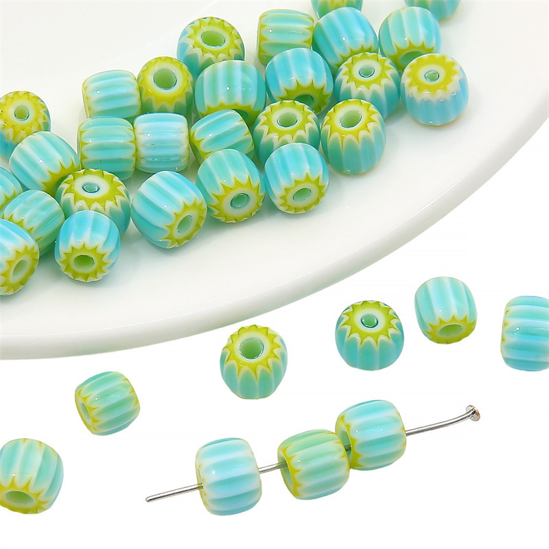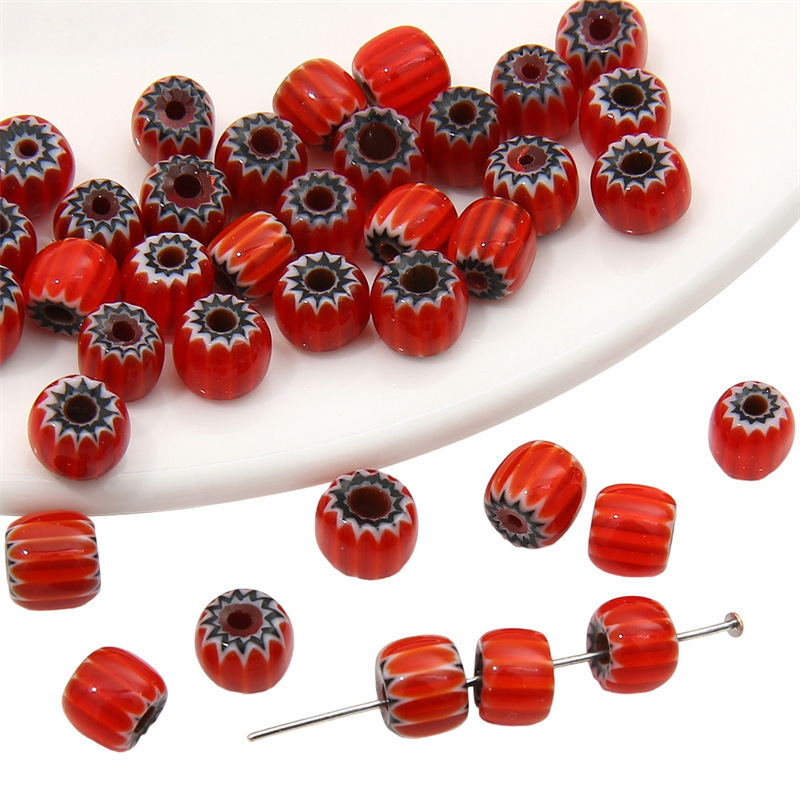 6mm 유리 천 꽃 네팔 호박 구슬 수제 DIY 손끈 줄무늬 배럴 구슬 목걸이 보석 펜던트 액세서리