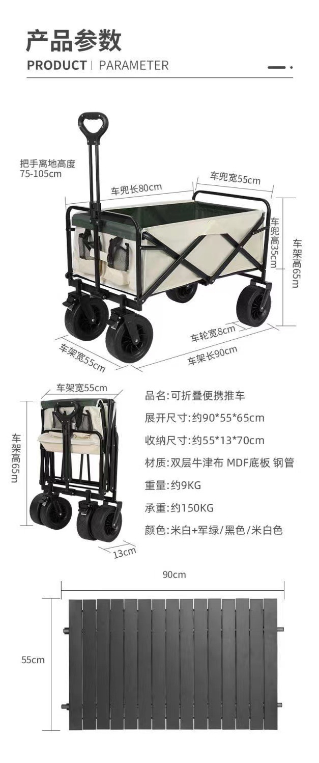 오픈 필드 물고기 캠핑 트롤리 접이식 야외 핸드 푸시 피크닉 카 캠프 트레일러 풀로드 트롤리 캠핑 카