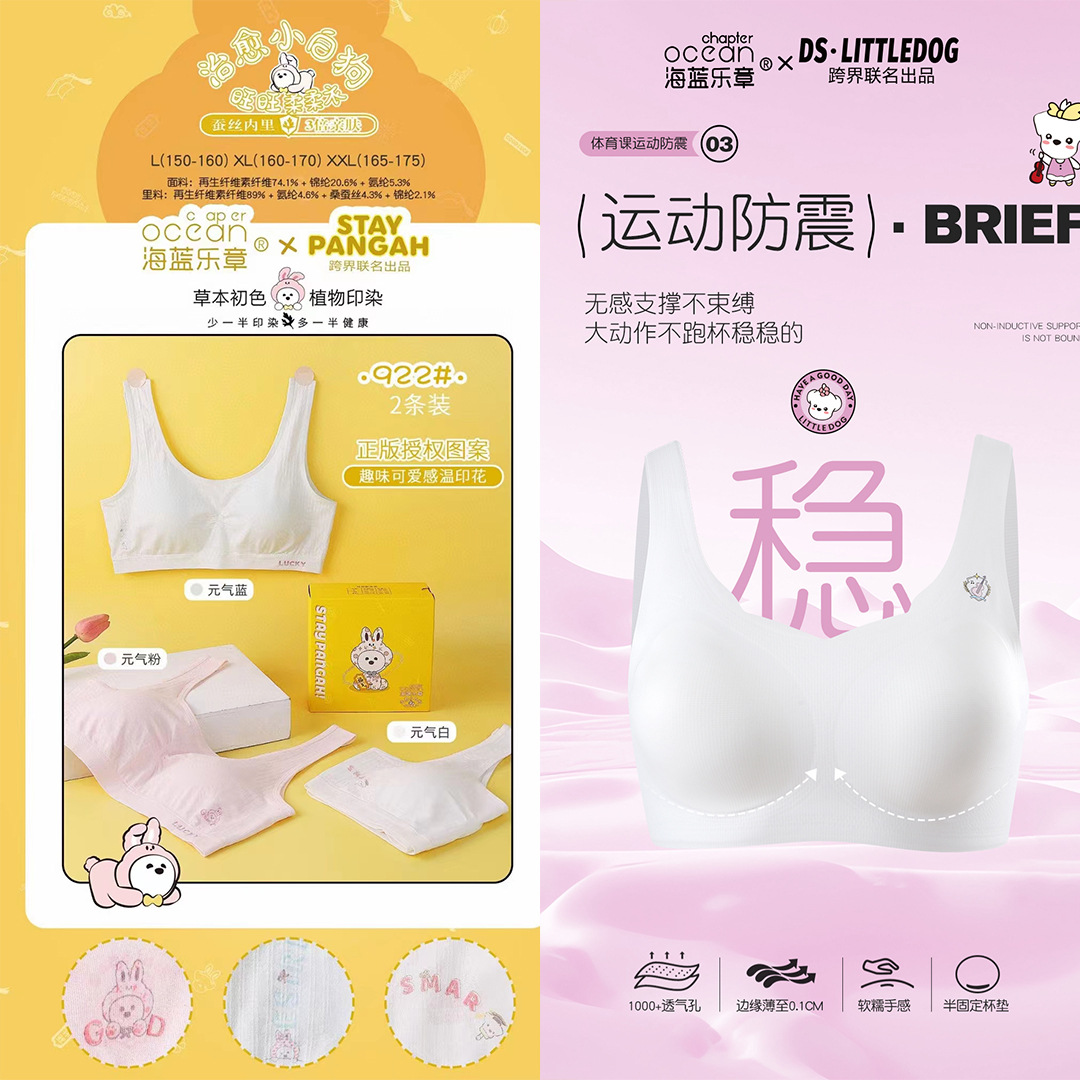 바다 푸른 운동 소녀 부드러운 속옷 두 팩 상자