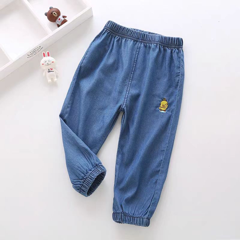 어린이 모기 방지 바지 여름 얇은 소녀 랜턴 바지, 면 어린이 느슨한 캐주얼 소년 데님 바지스토어 가기
