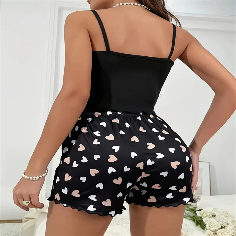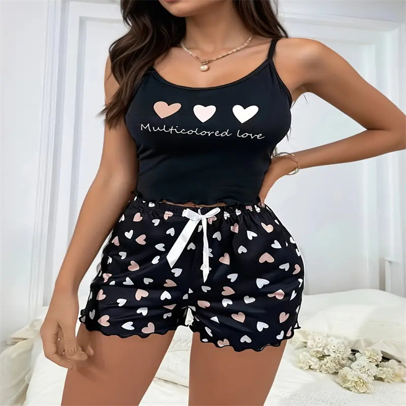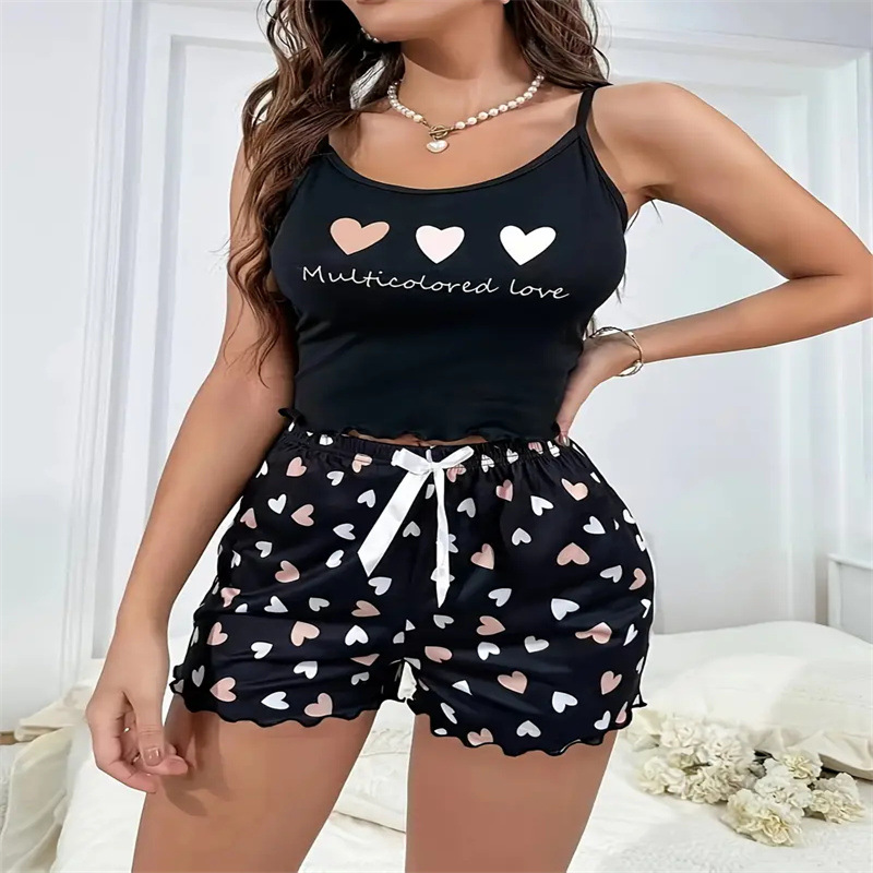 유럽과 미국의 국경 간 Amazon AliExpress 섹시한 잠옷 여성 디지털 사랑 인쇄 서스펜더 세트 반바지 홈웨어스토어 가기