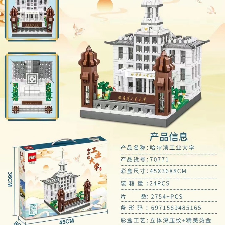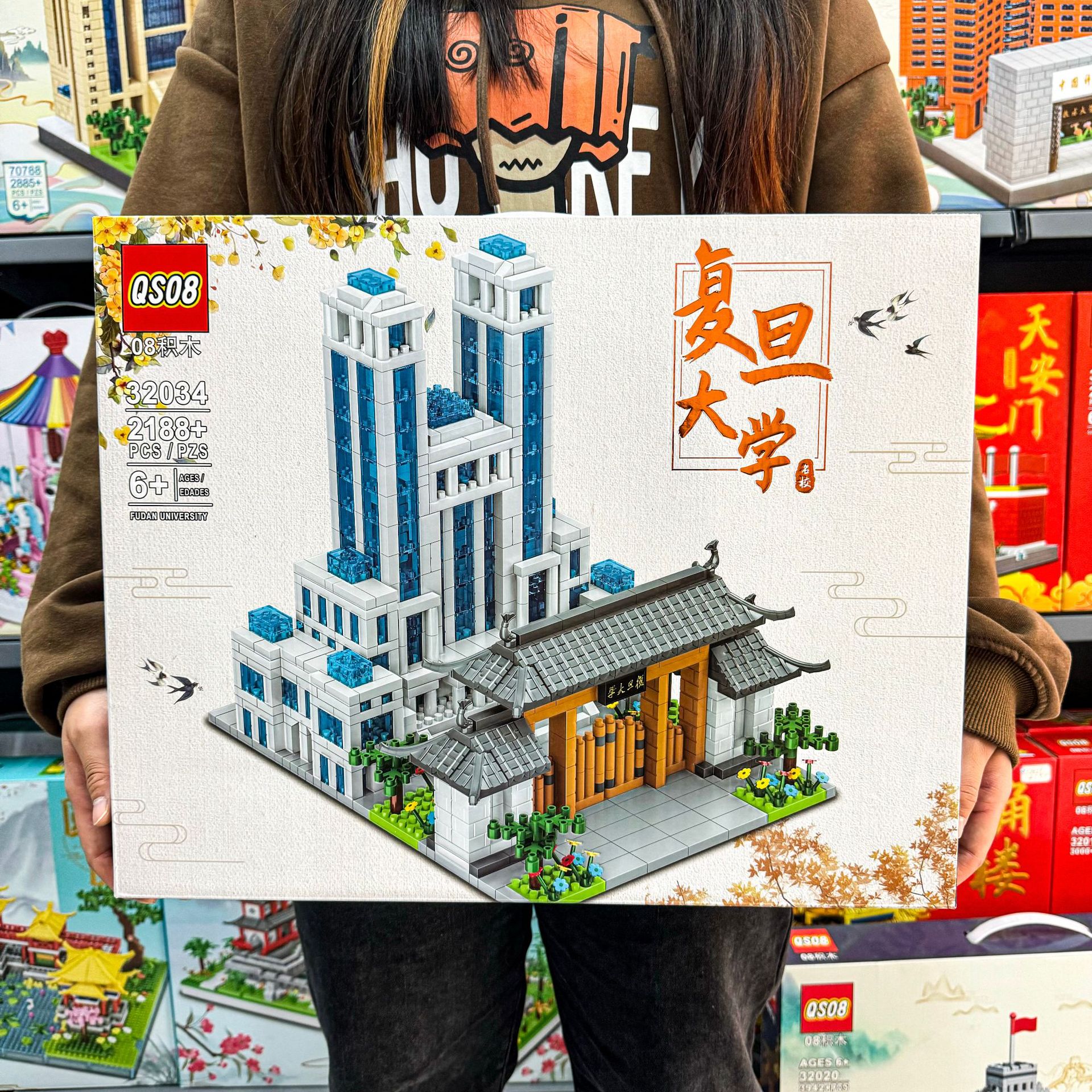 칭화 대학 유명한 학교 조립 건물 블록 레고 입자 북경 대학 건물 모델 교육 기관 활동 선물스토어 가기