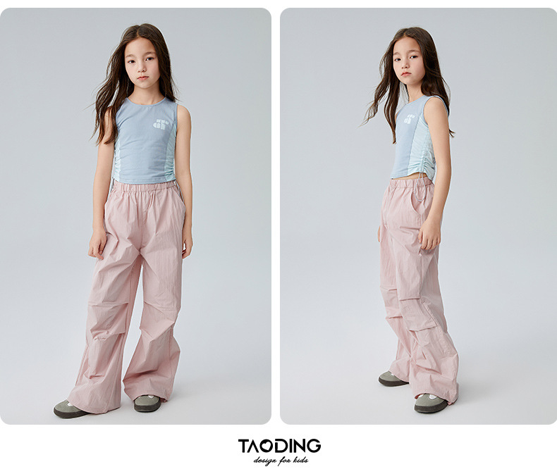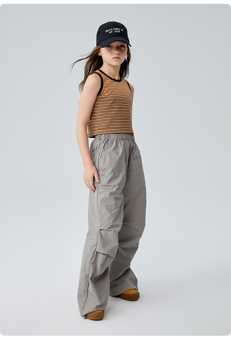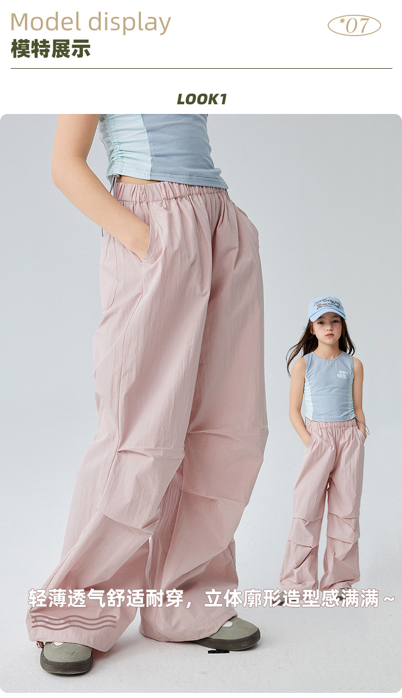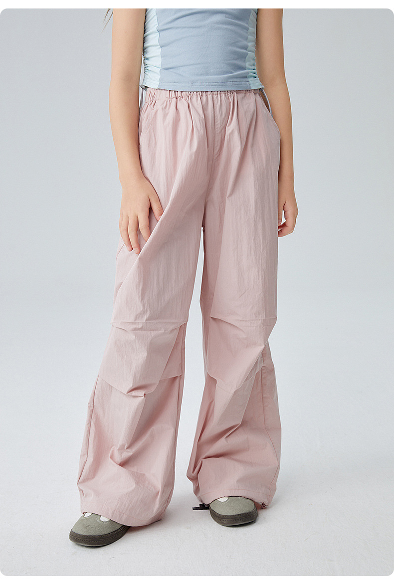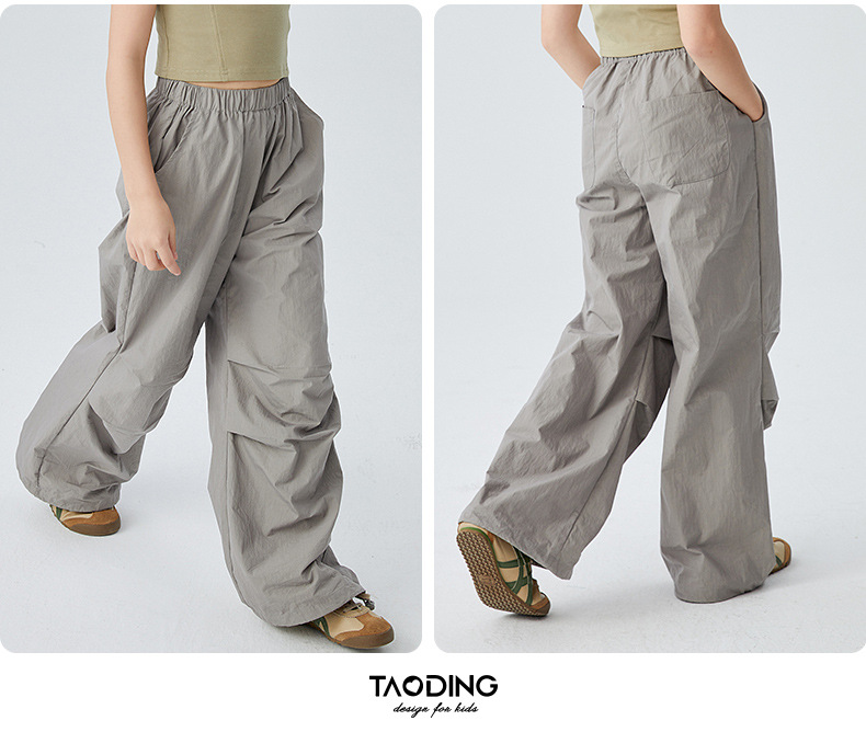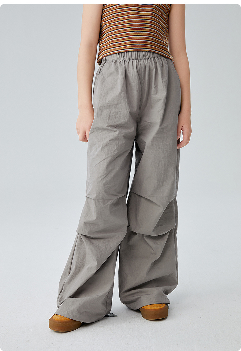 Amoy 여자 캐주얼 바지 봄과 여름 2024 새로운 대형 어린이 단색 느슨한 주름 얇은 캐주얼 다용도 바지