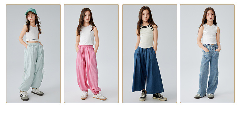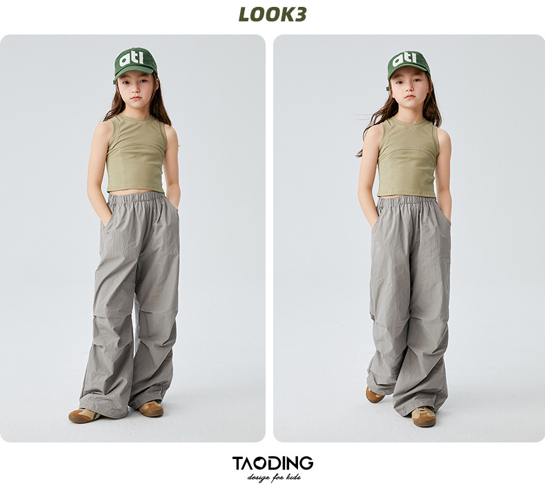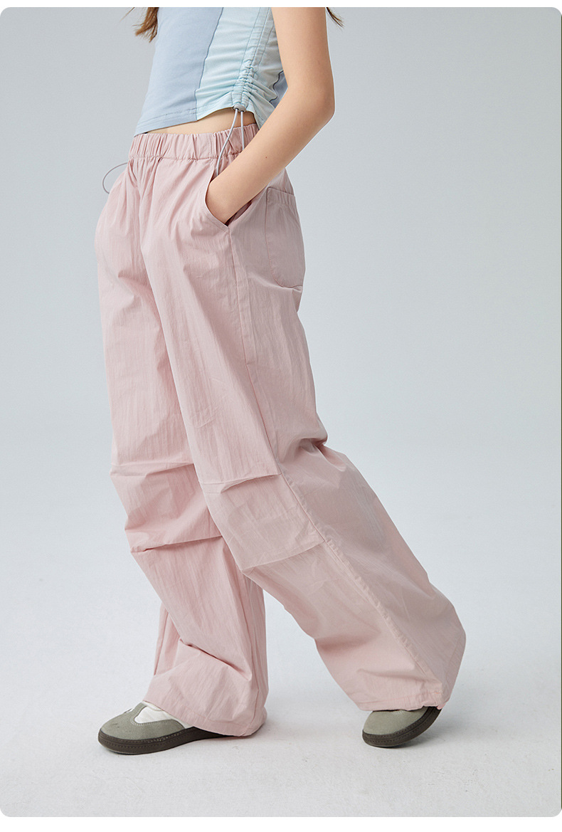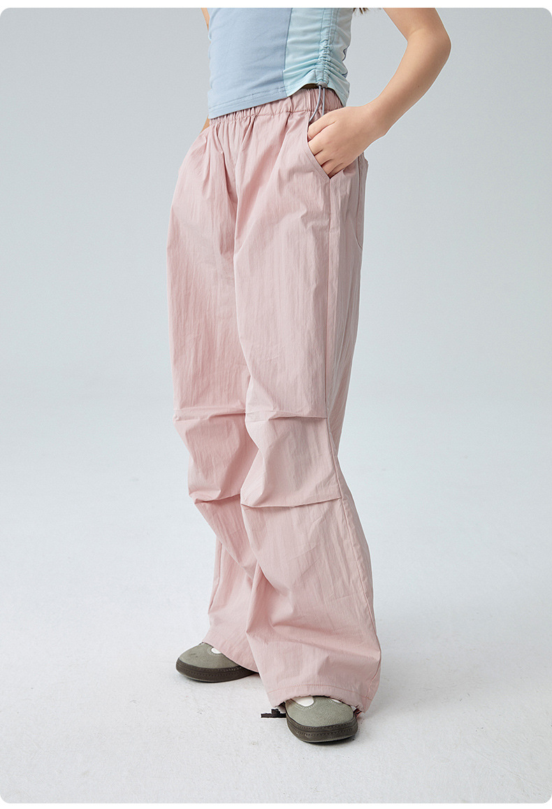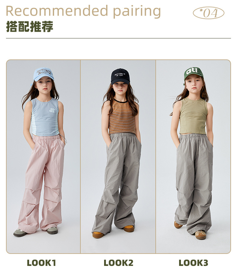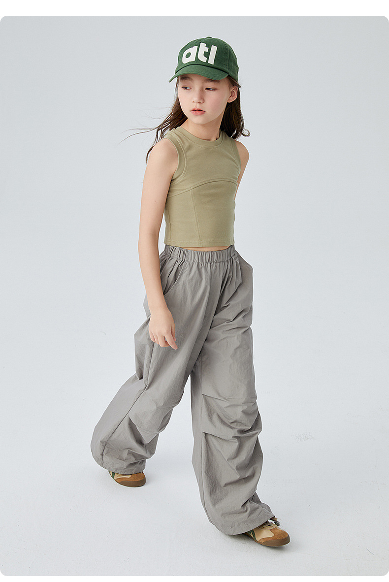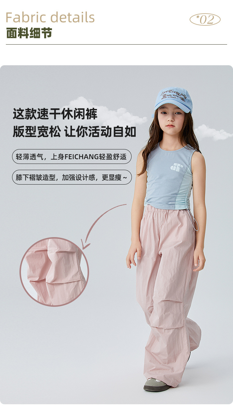 Amoy 여자 캐주얼 바지 봄과 여름 2024 새로운 대형 어린이 단색 느슨한 주름 얇은 캐주얼 다용도 바지