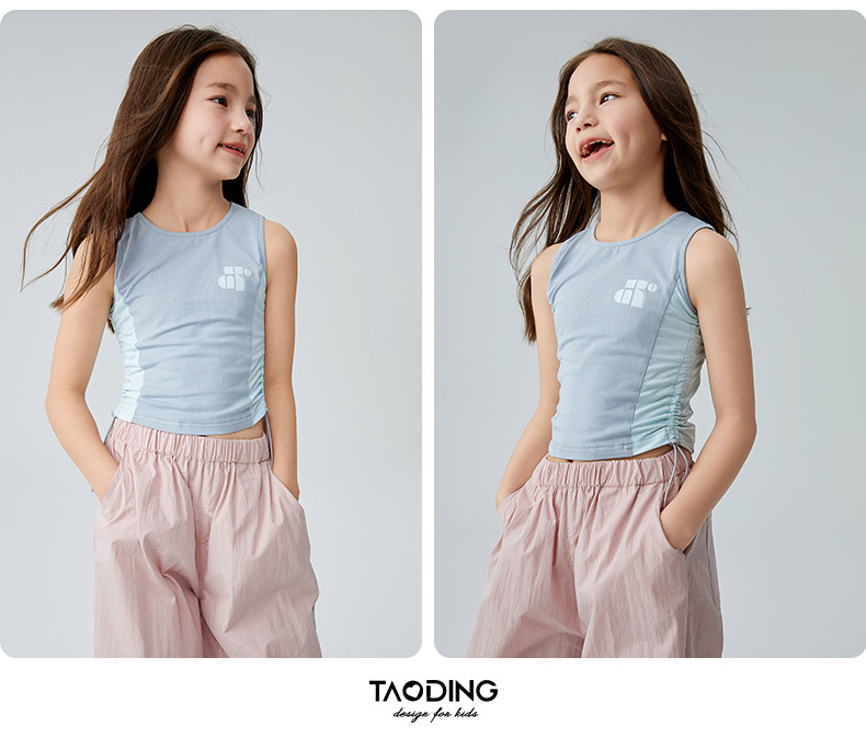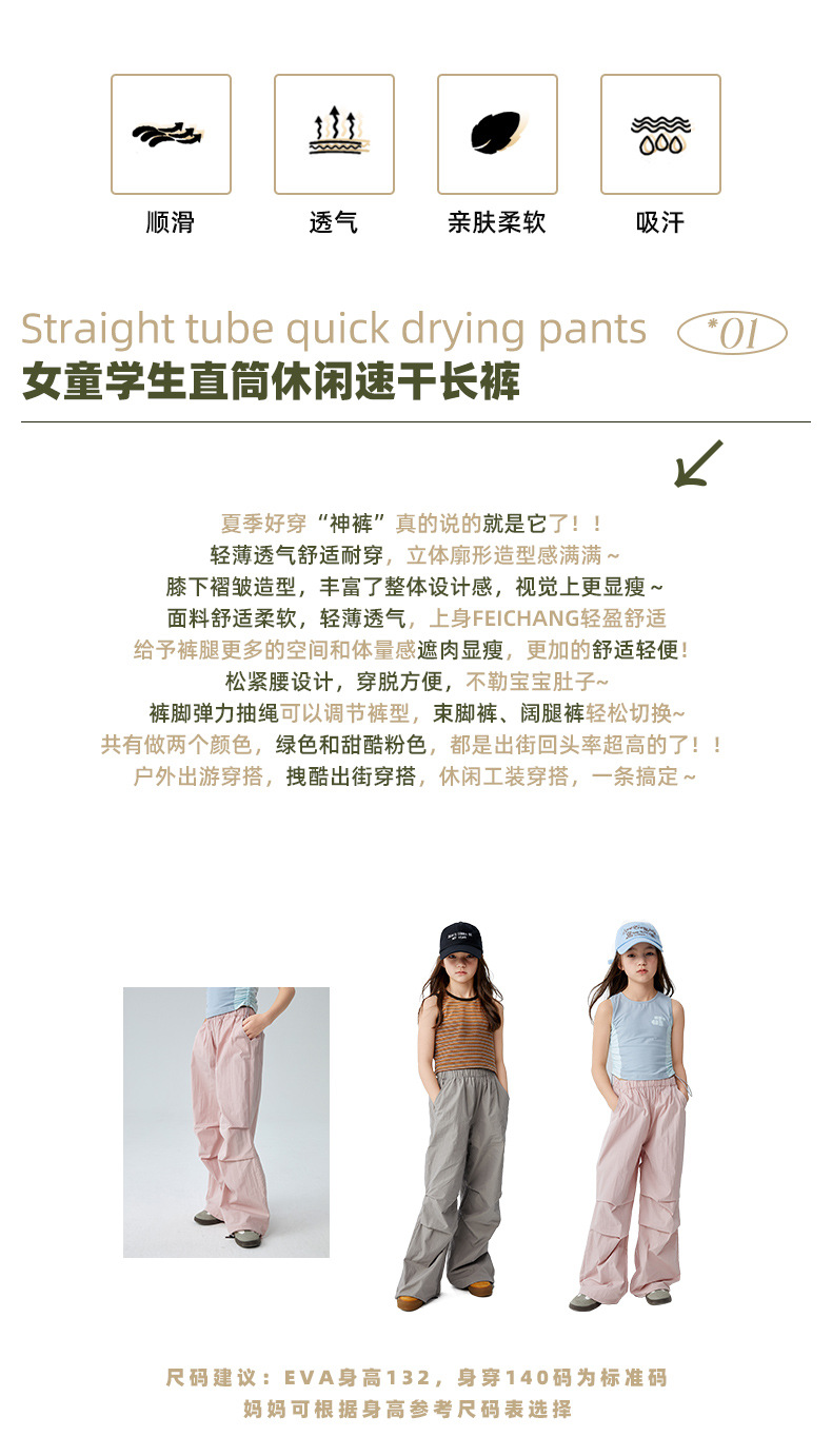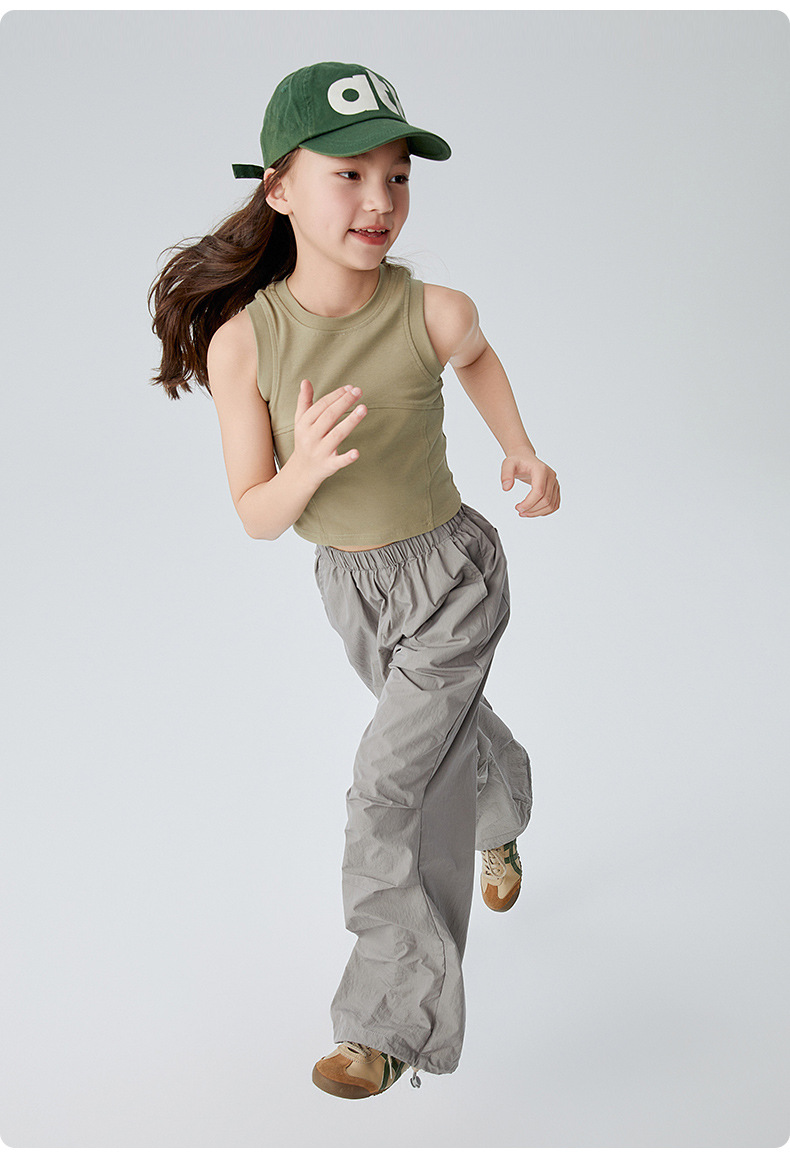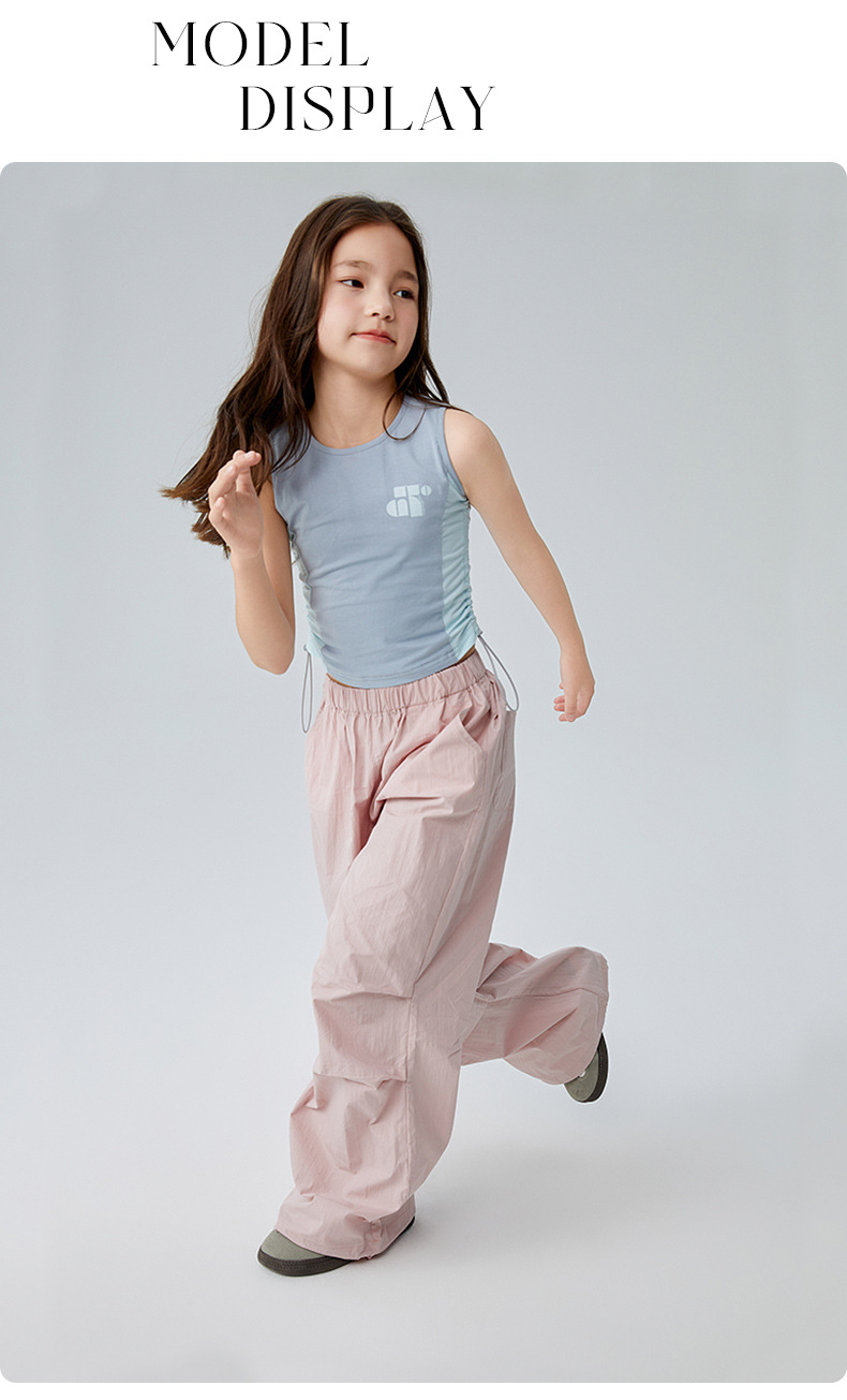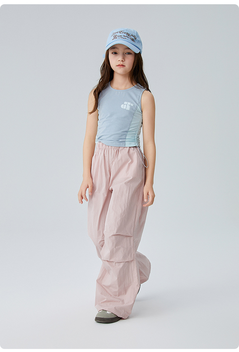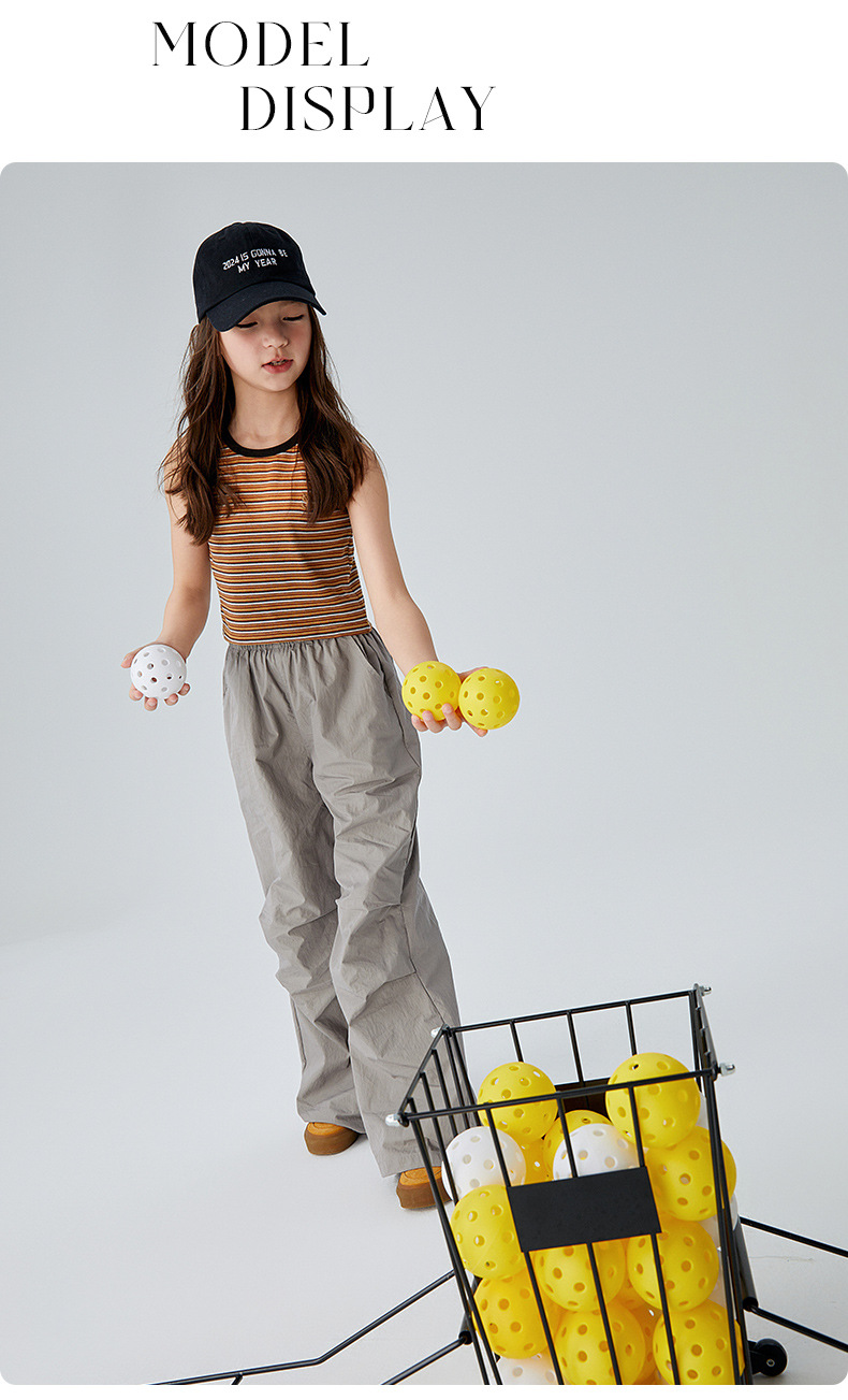 Amoy 여자 캐주얼 바지 봄과 여름 2024 새로운 대형 어린이 단색 느슨한 주름 얇은 캐주얼 다용도 바지