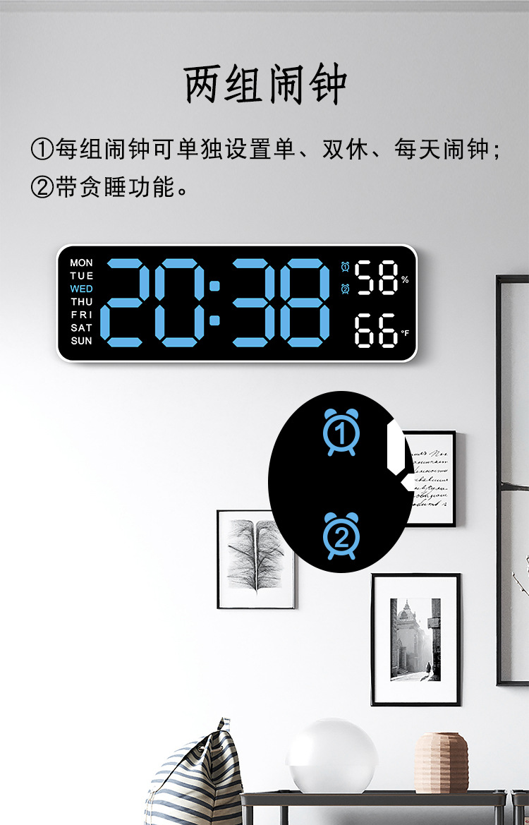 5503 국경 뜨거운 판매 전자 시계 간단한 다기능 시계 직사각형 큰 글꼴 알람 시계 매달려 서 시계