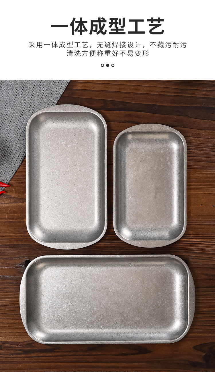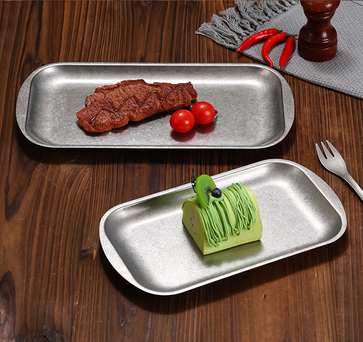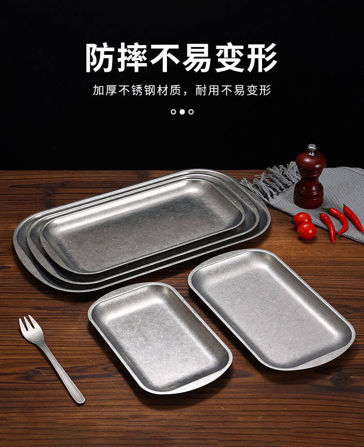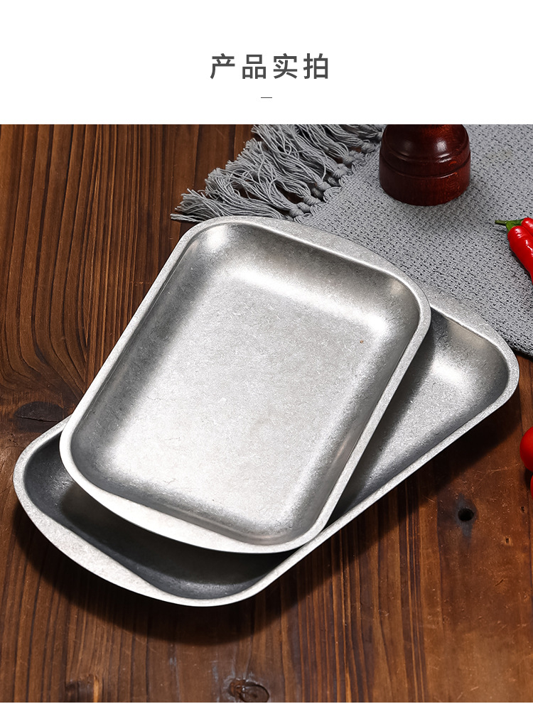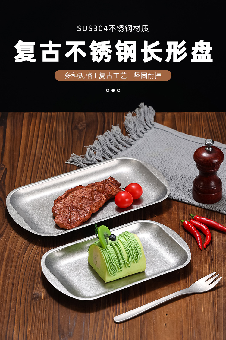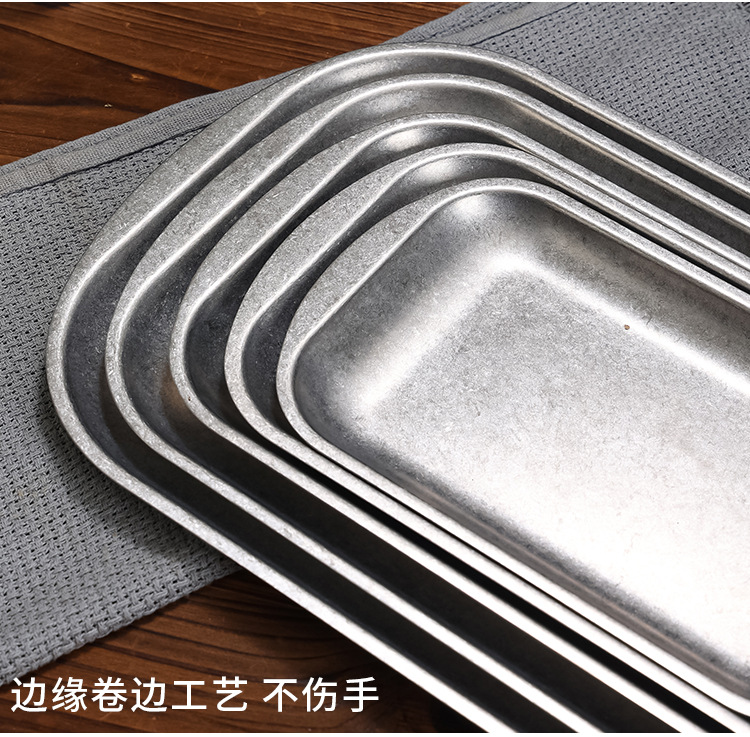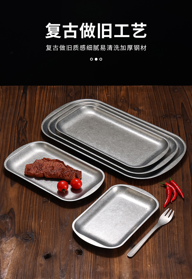 한국 스타일 304 스테인레스 스틸 직사각형 플레이트 산업용 스타일 트레이 상업 바베큐 바베큐 플랫 플레이트 빈티지 식기스토어 가기