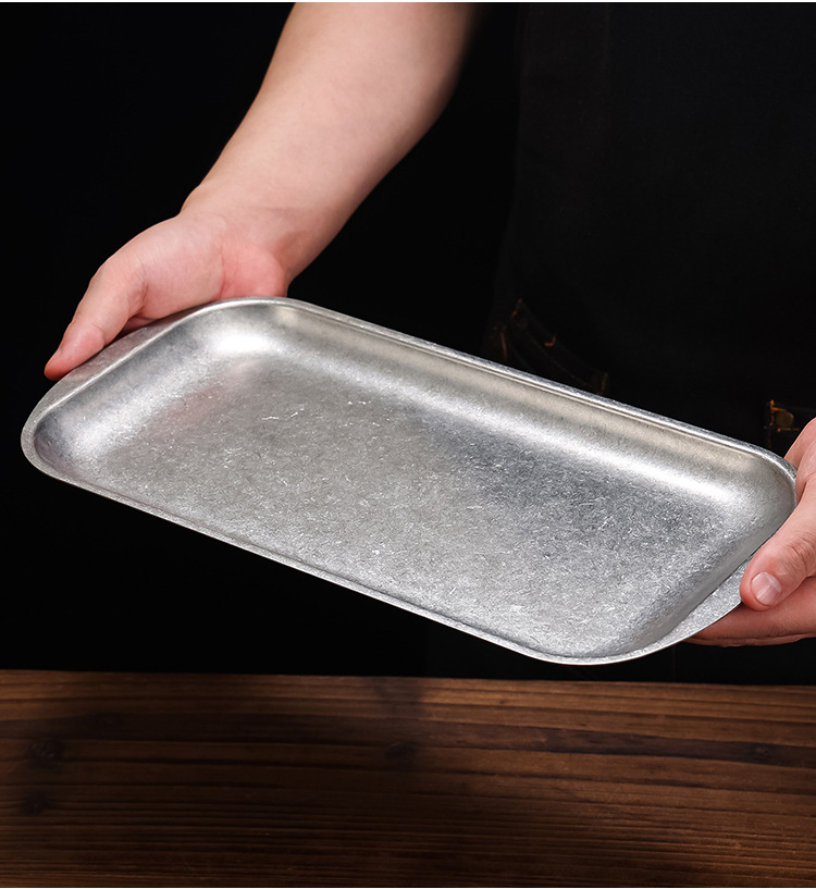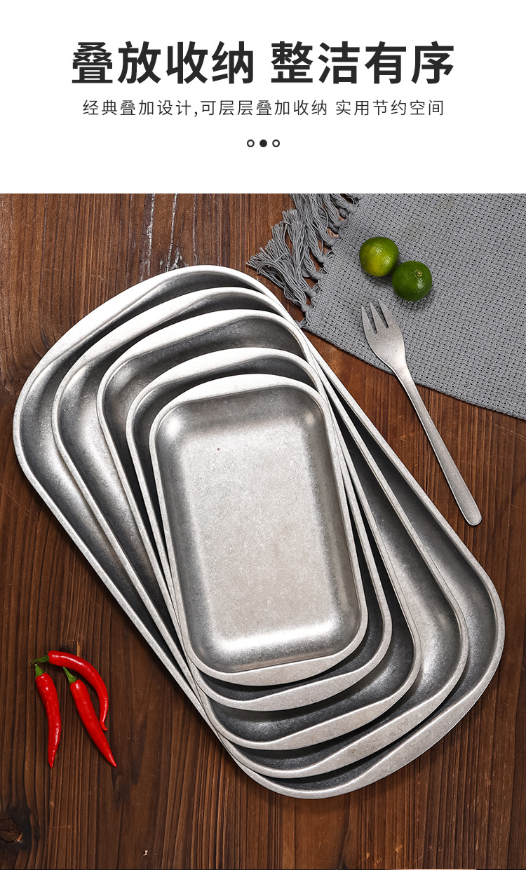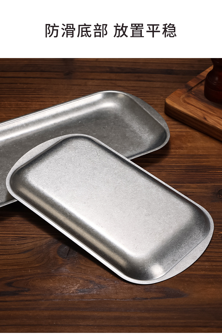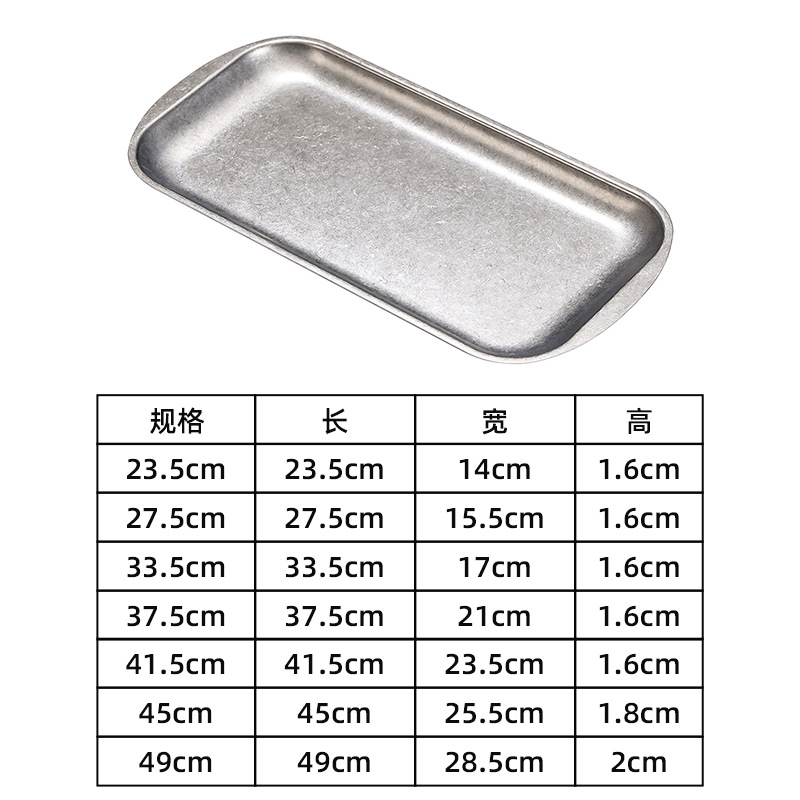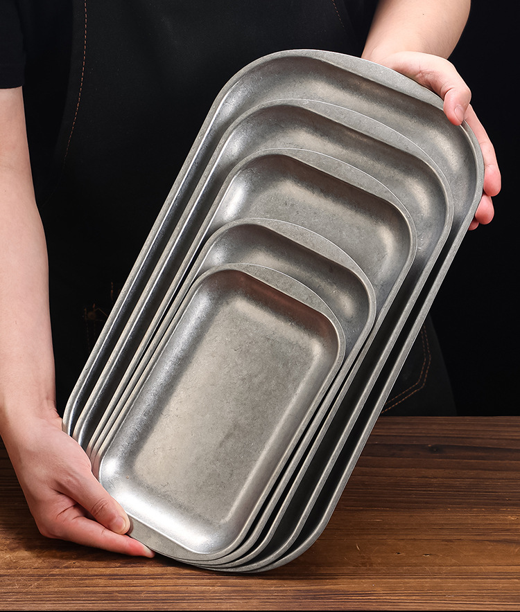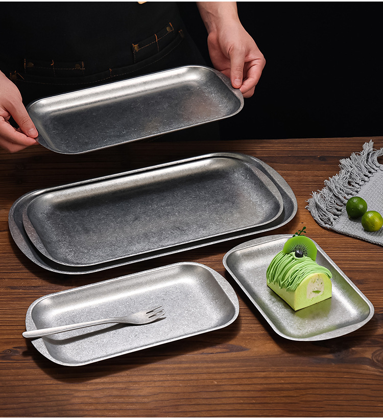 한국 스타일 304 스테인레스 스틸 직사각형 플레이트 산업용 스타일 트레이 상업 바베큐 바베큐 플랫 플레이트 빈티지 식기스토어 가기