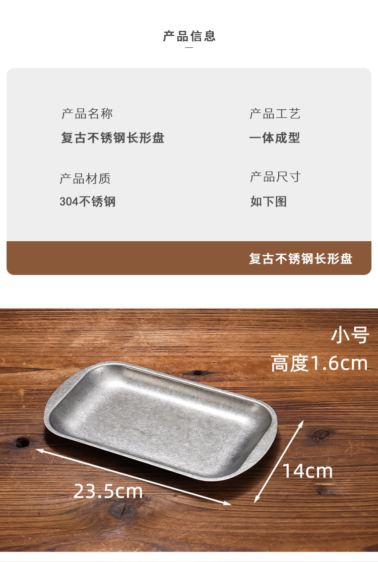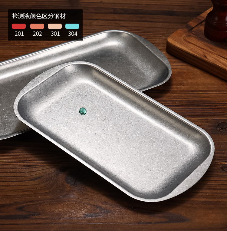 한국 스타일 304 스테인레스 스틸 직사각형 플레이트 산업용 스타일 트레이 상업 바베큐 바베큐 플랫 플레이트 빈티지 식기