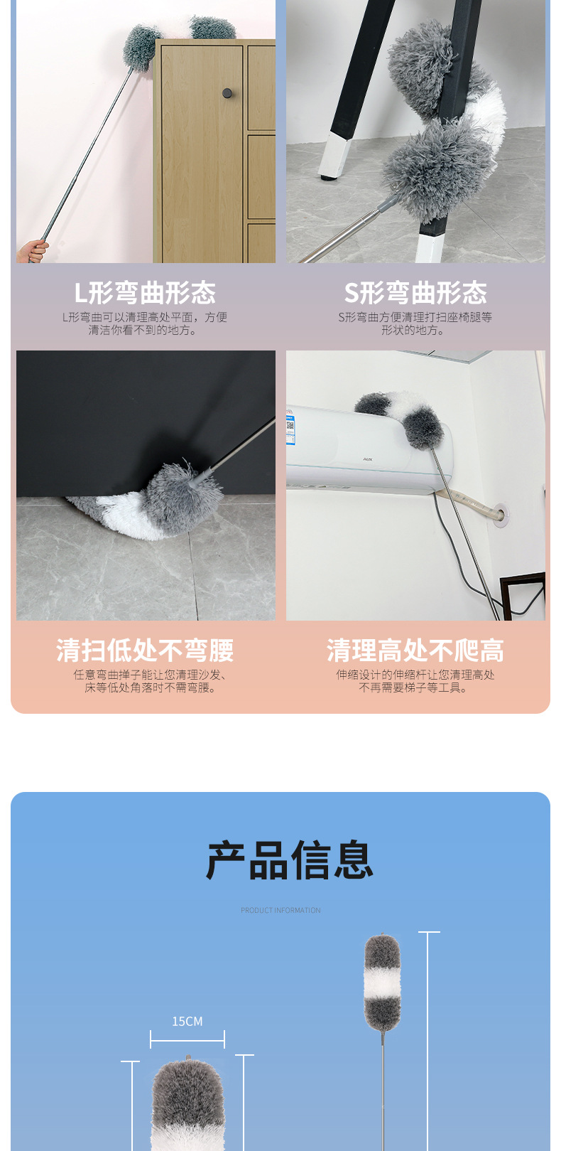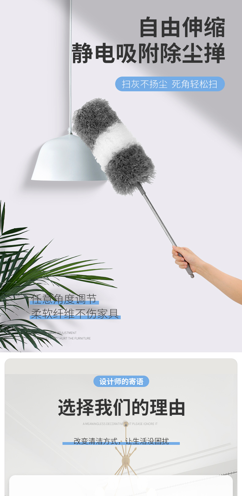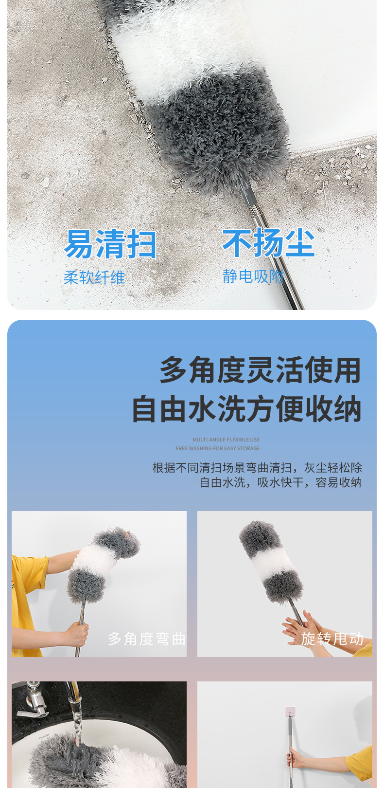 새로운 가정용 깃털 먼지 떨이 2.8m 가정용 먼지 청소 Zen 청소 천장 확장 텔레스코픽 먼지 떨이
