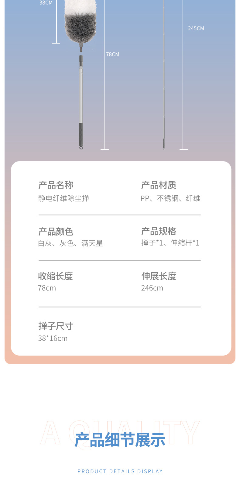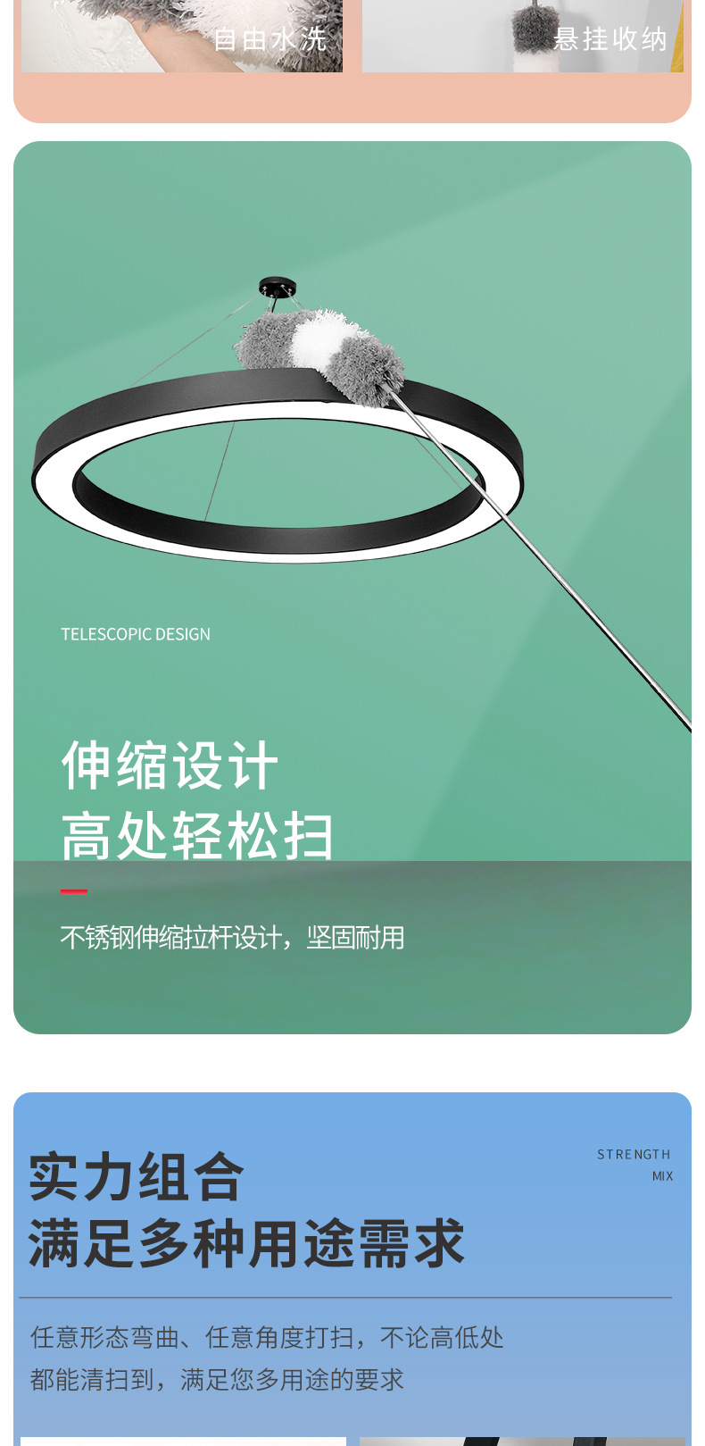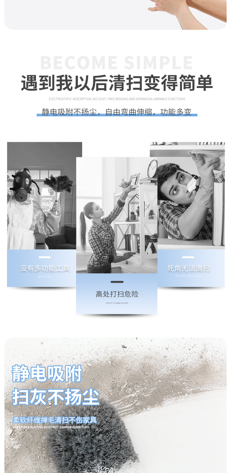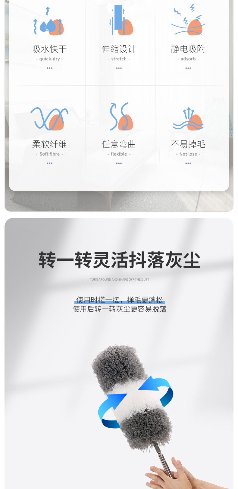 새로운 가정용 깃털 먼지 떨이 2.8m 가정용 먼지 청소 Zen 청소 천장 확장 텔레스코픽 먼지 떨이